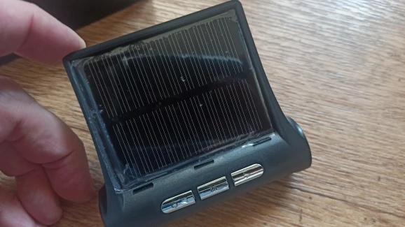 Погрешность в показаниях есть,но не значительная .Солнечная батарейка работает.В режиме покоя гаджет отключается,при открытии дверей включается.Металл на резьбе очень мягкий,а так достойно!К покупке рекомендую
