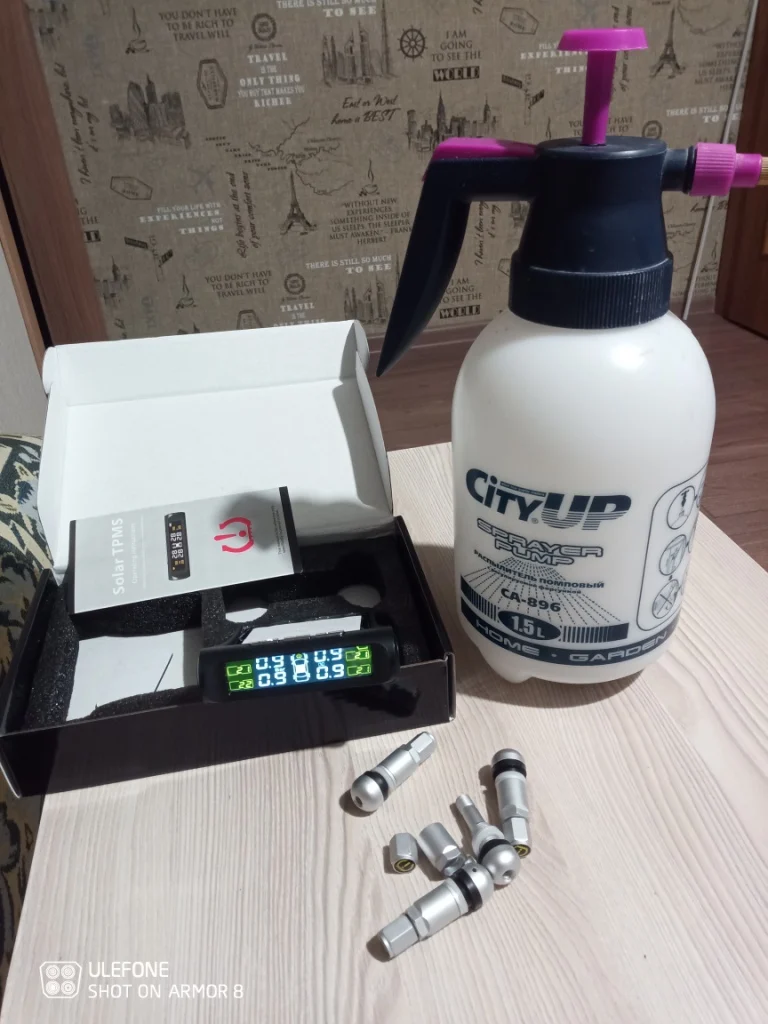 Охеренная штуковина.Выглядет очень качественно.Думал будет хуже.Заряжается от солнца.Погрешность в давлении есть,но это не так страшно,да и наверное есть калибровки.Еще не разберался.Меньше недели с момента заказа и эта штука уже у меня.Единственное в чем была проблема,так что у меня диски своеобразные с соском в районе колесных болтов под крышкой и пришлось поработать болгаркой и дрелью что бы подошли и закрывались крышки.