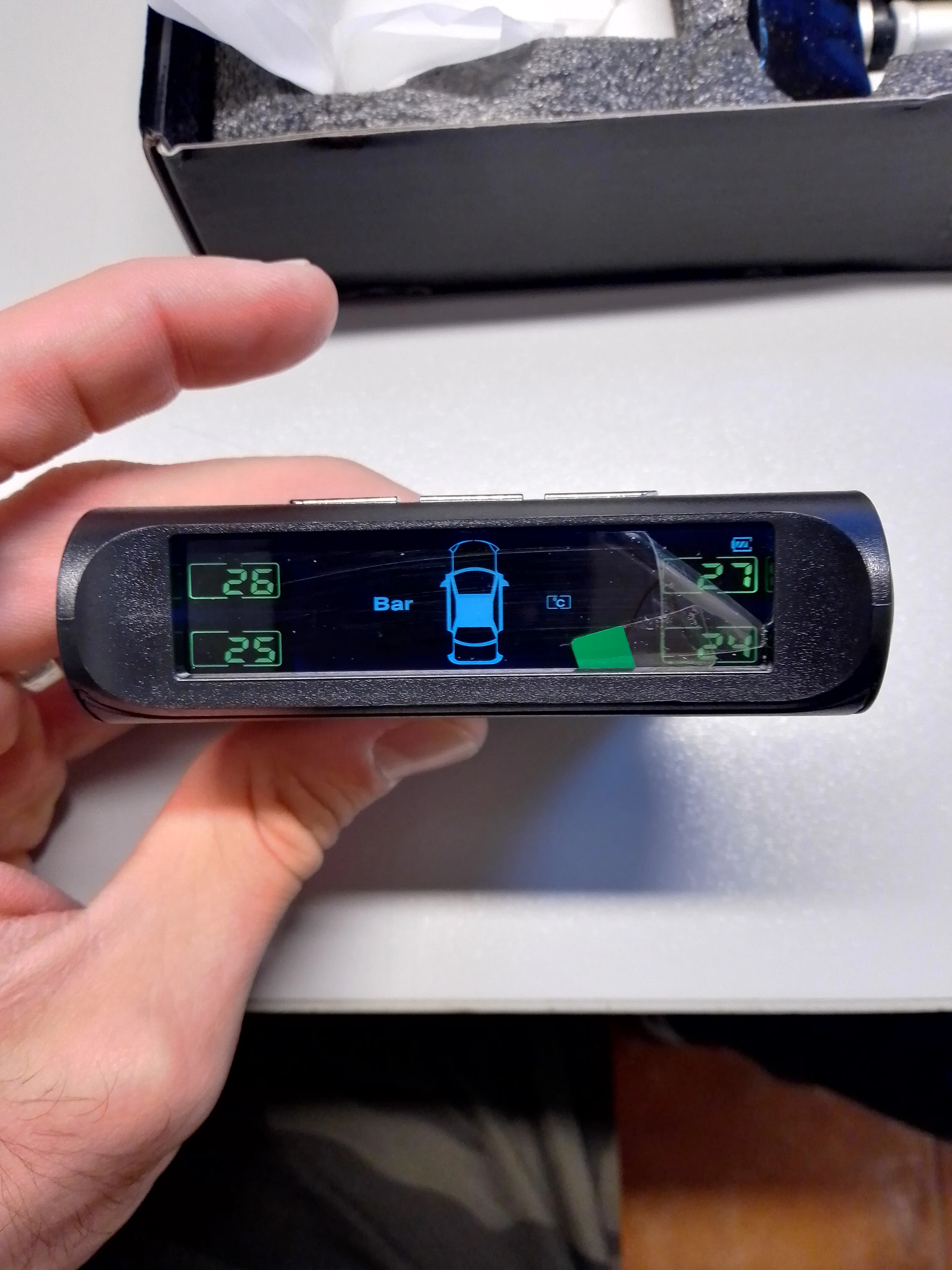 Отлично работает. На машину пока не ставил. На столе подружил датчики с устройством. В меню настроек надо выбрать конкретное колесо, и на этом датчике вынуть и вставить батарейку. Подключается моментально. И повторить такую процедуру с остальными датчиками. Если данные не корректные-есть меню калибровки.