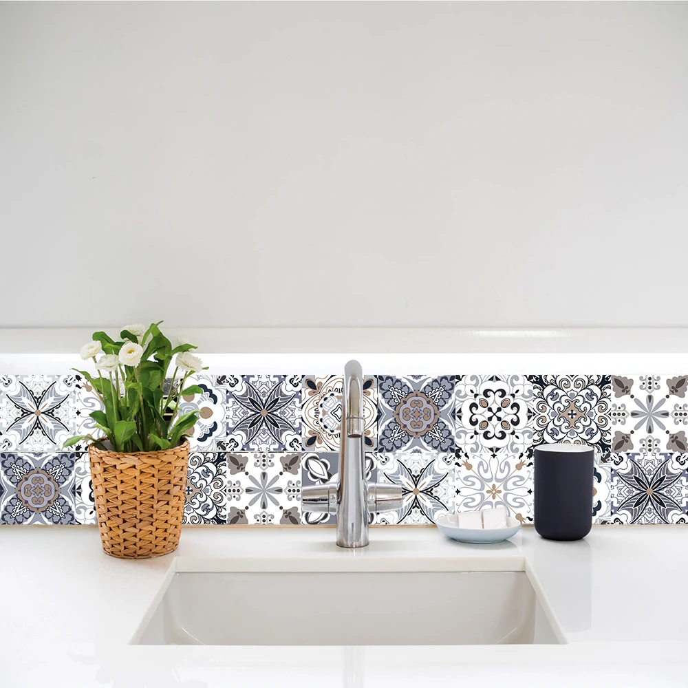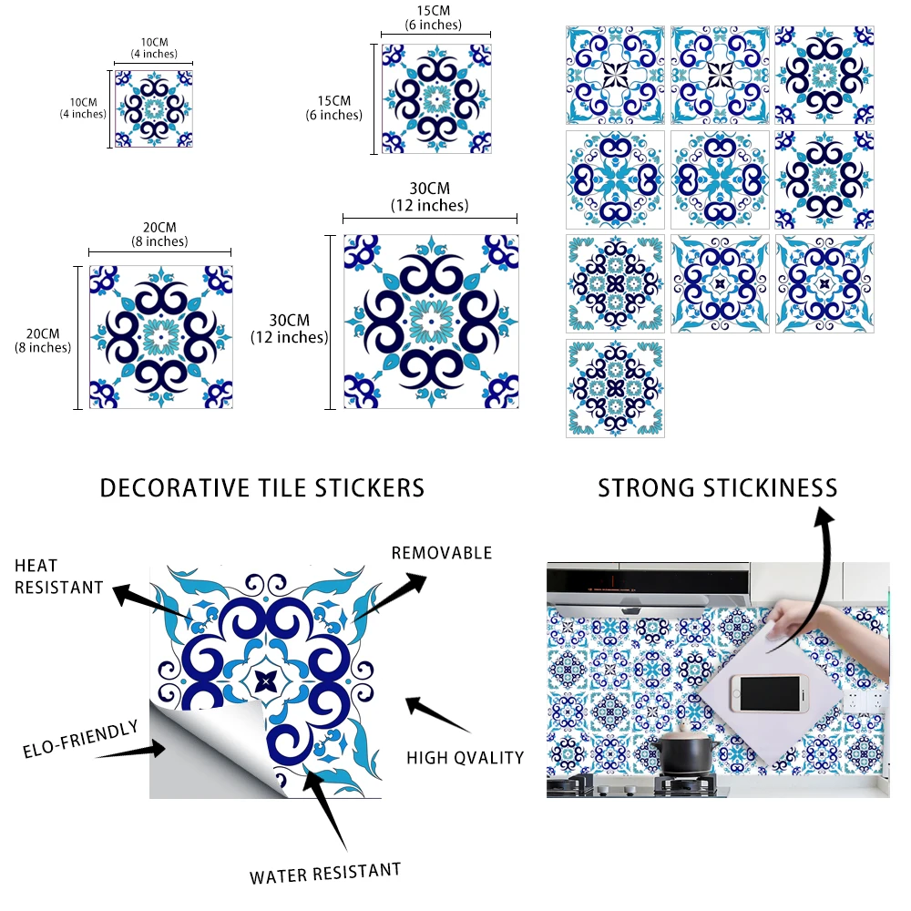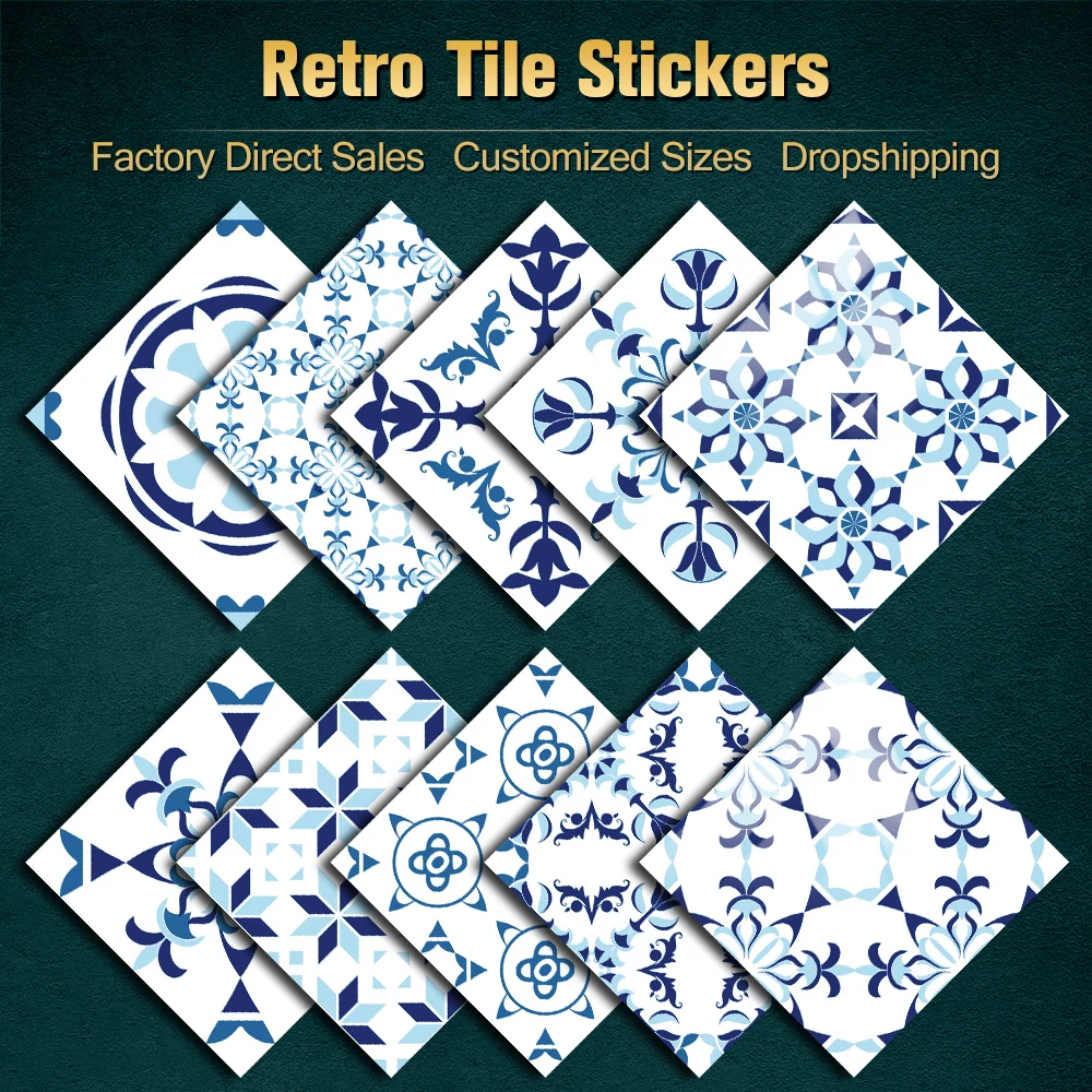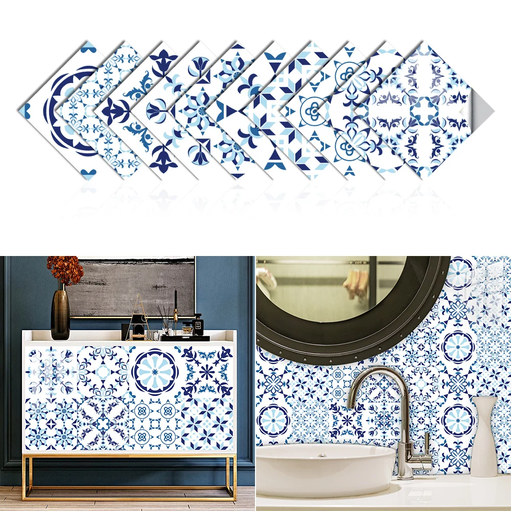 Наклейки на стену из керамики, темно-синие и белые, 10 шт.компл.