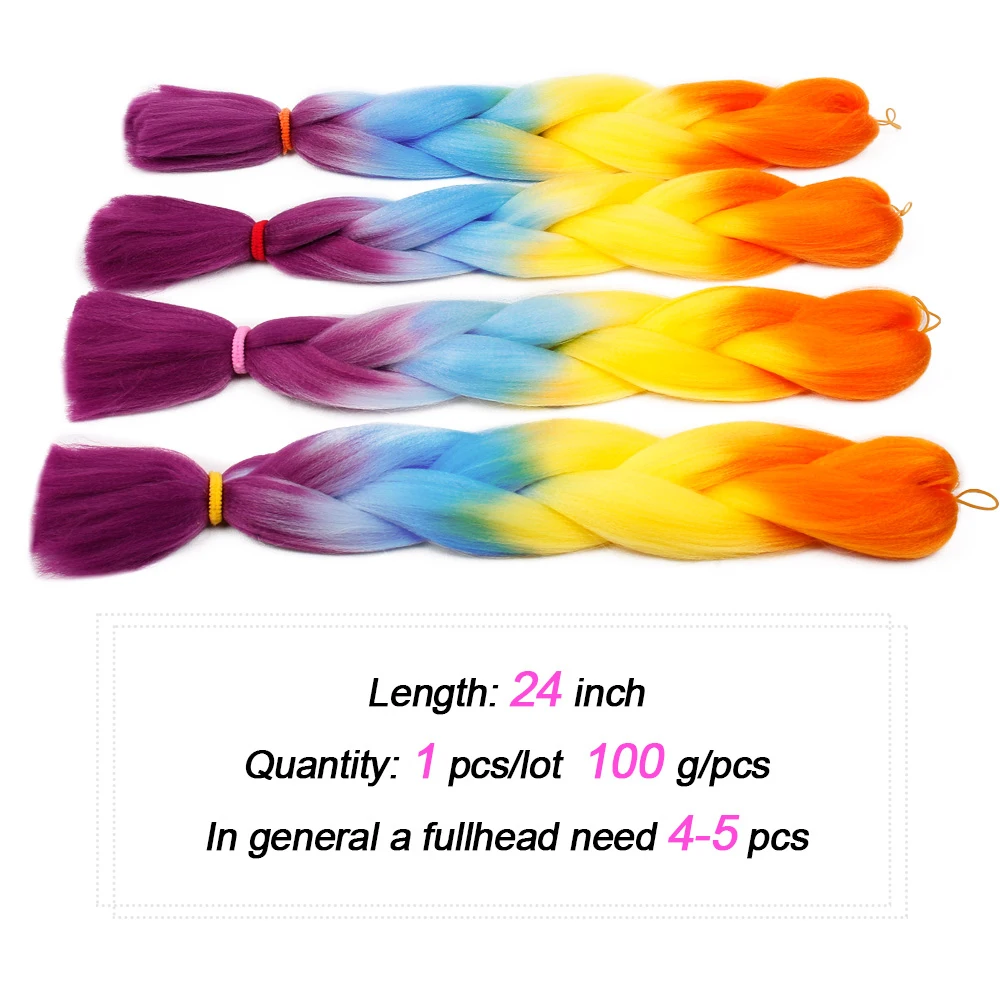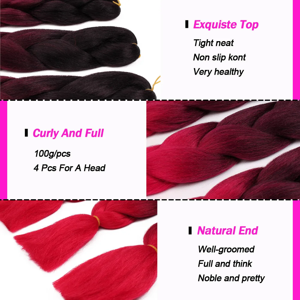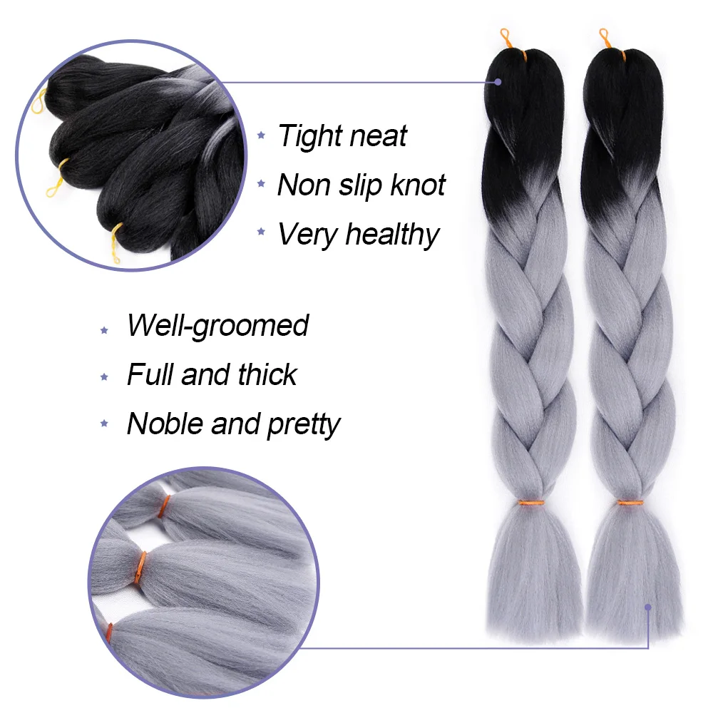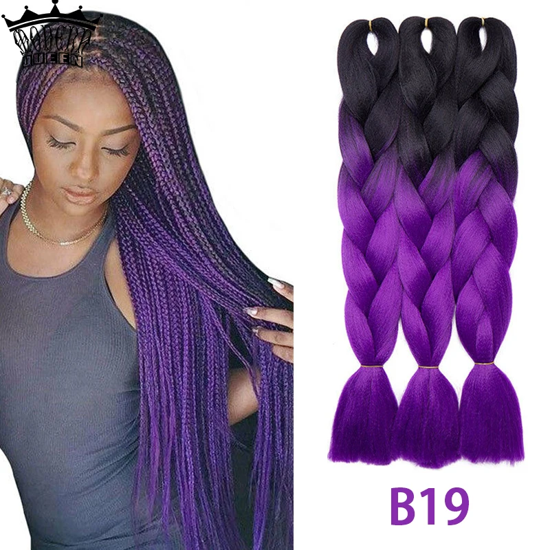 Современная королева 24 дюйма Джамбо косы длинные пряди Омбре крючком косы Синтетические плетение Наращивание волос для женщин черный фиолетовый