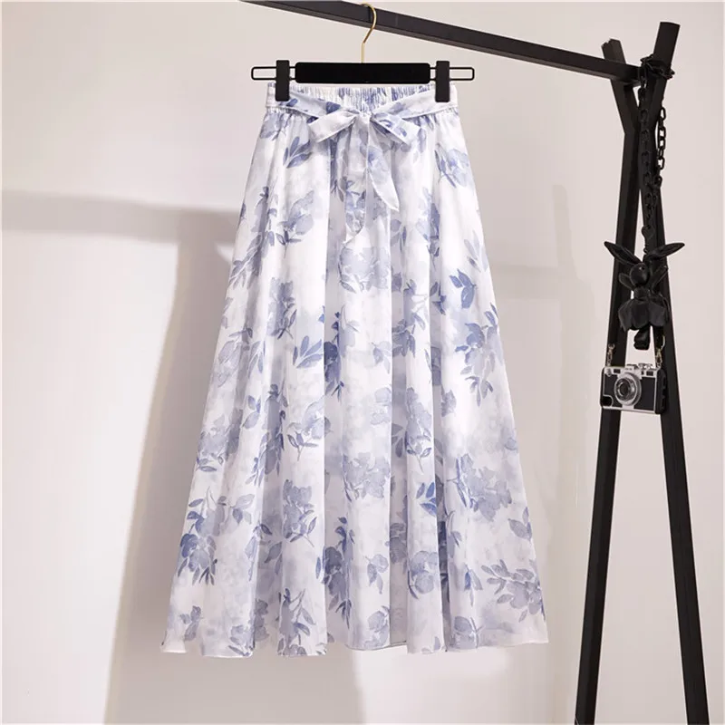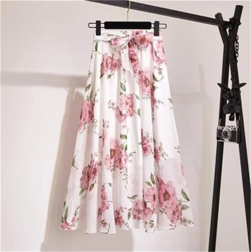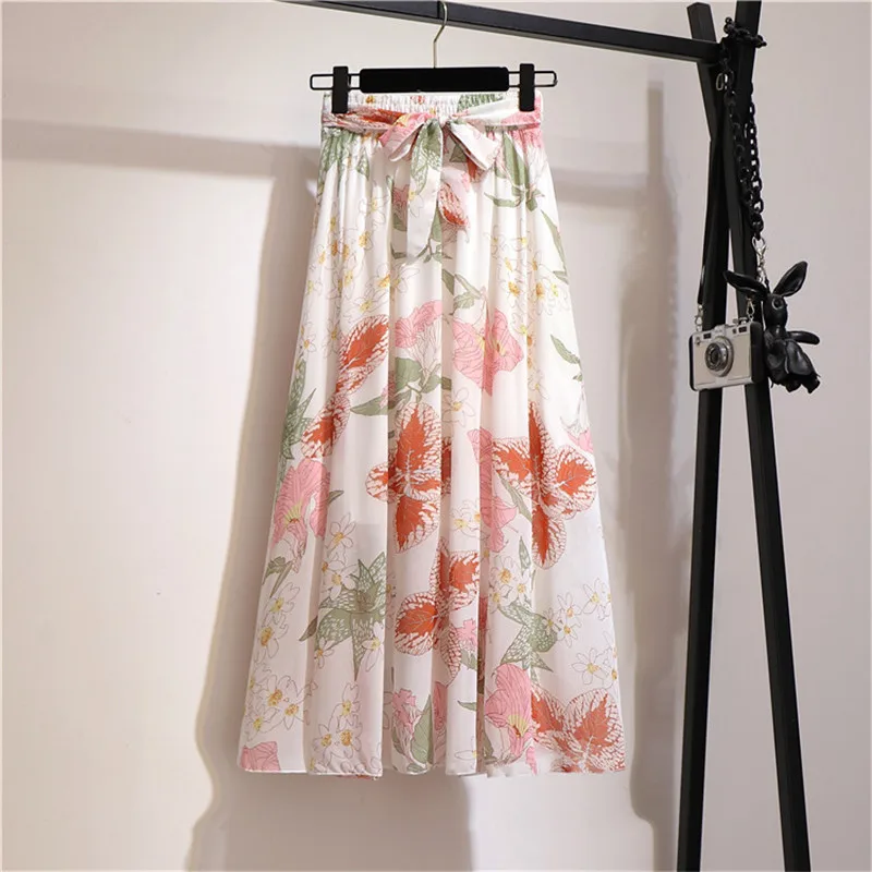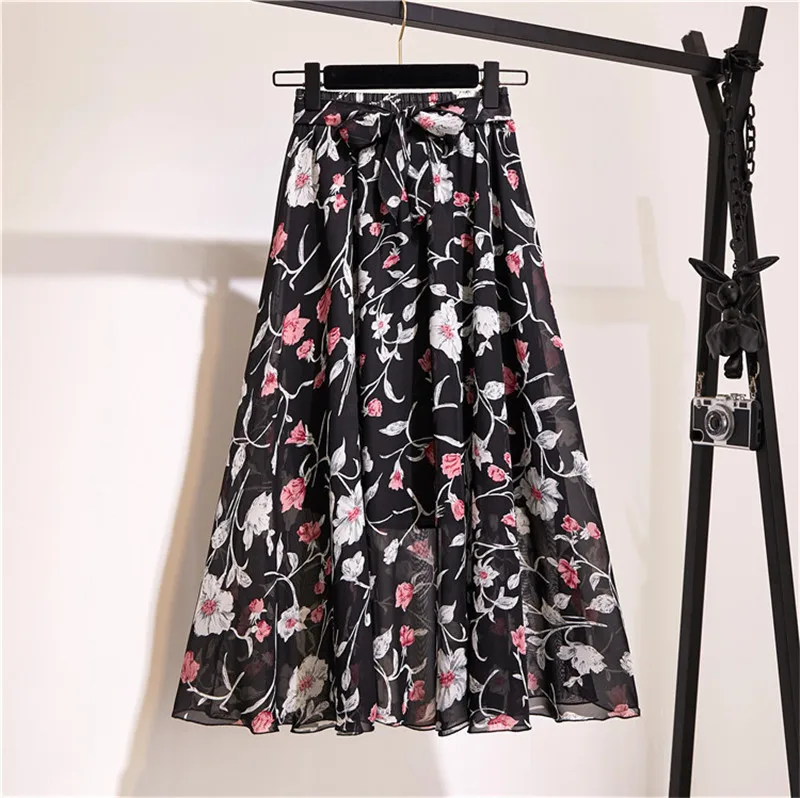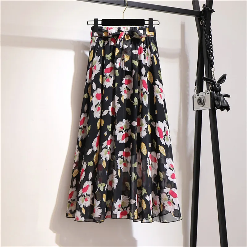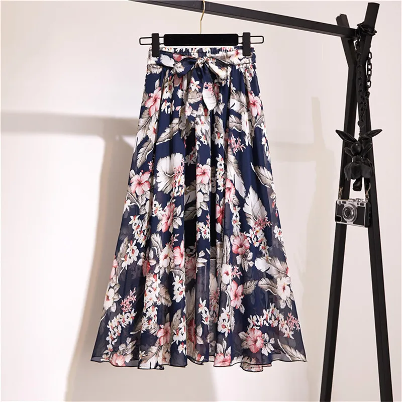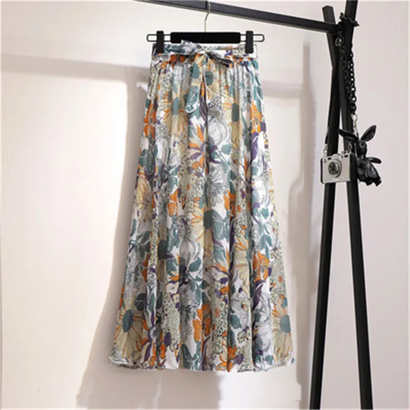 С высокой талией в стиле Бохо шикарный летний юбки женские шифоновы...