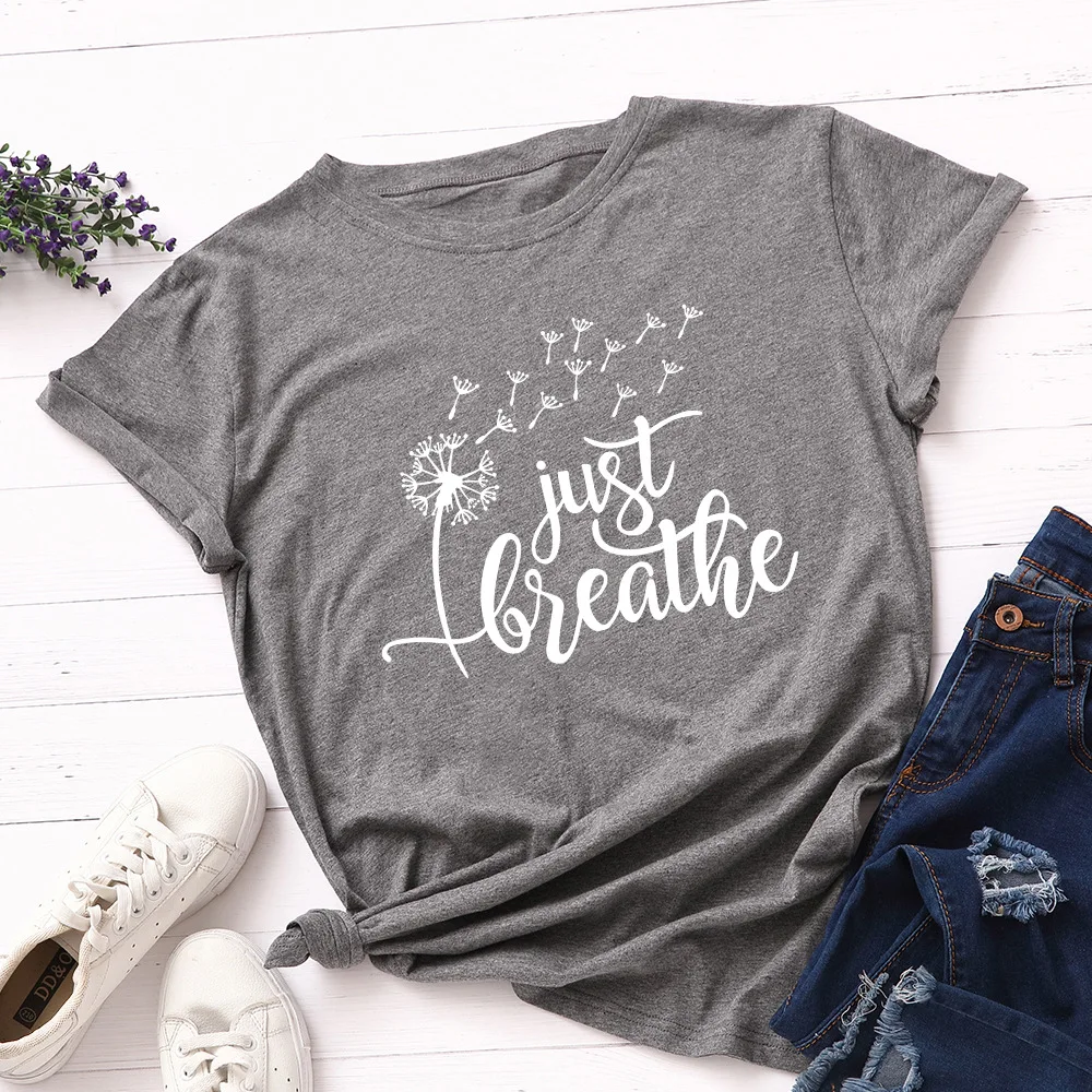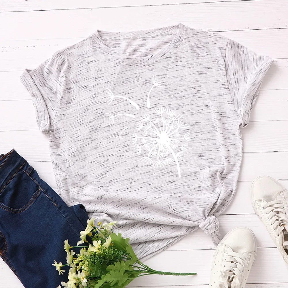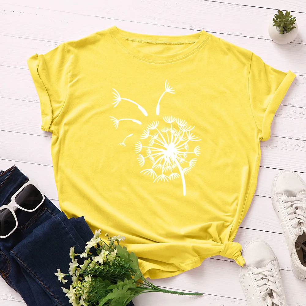 Футболка женская хлопковая с круглым вырезом, топ с принтом одуванчика и коротким рукавом, одежда на лето