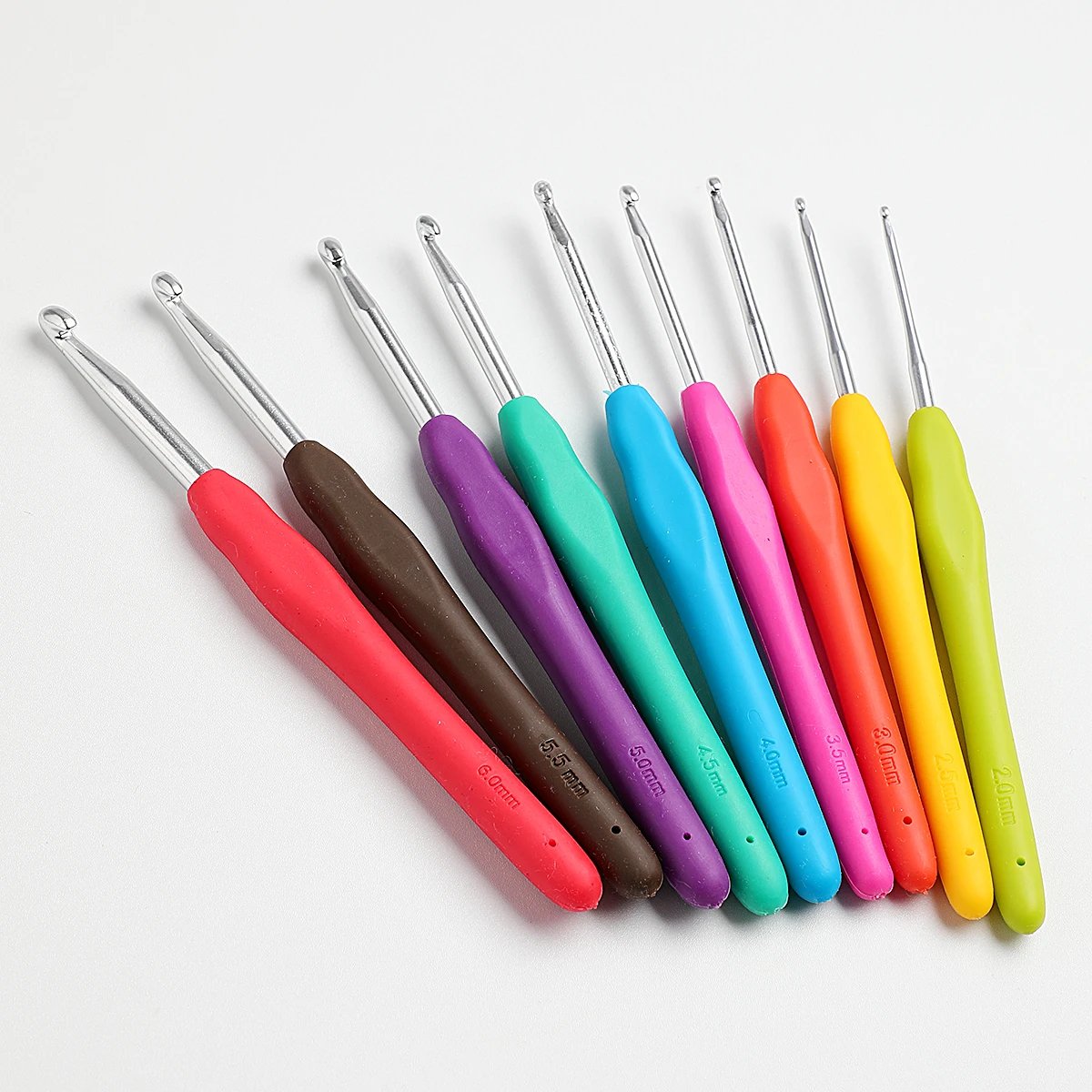 9pcs Soft Handle Crochet Needles Size2.0mm/2.5mm/3.0mm/3.5mm/4.0mm/4.5mm/5.0mm/5.5mm/6.0mm