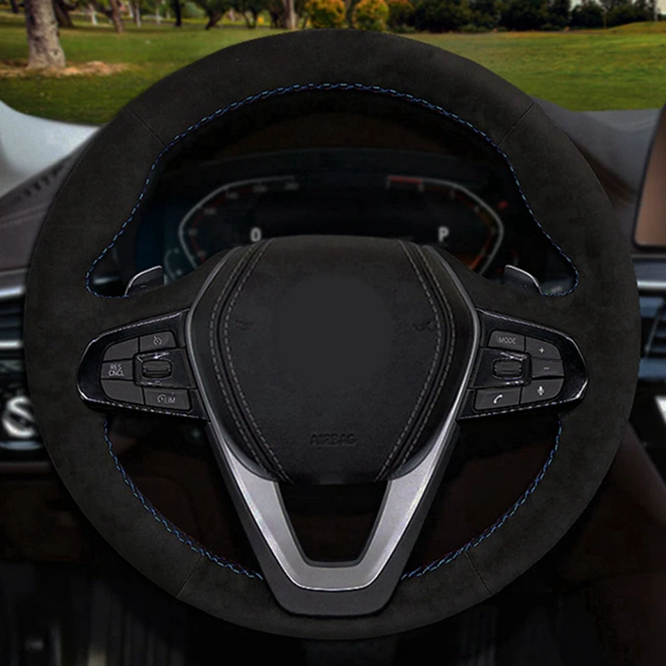 Чехол рулевого колеса автомобиля самодельная Нескользящая черная замша ручной работы для BMW G20 G21 G30 G31 G32 X3 G01 X4 G02 X5 G05 X7 G07 Z4 G29