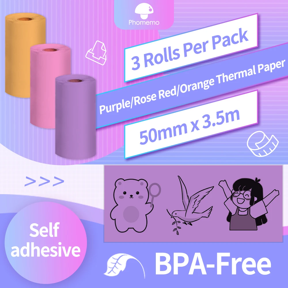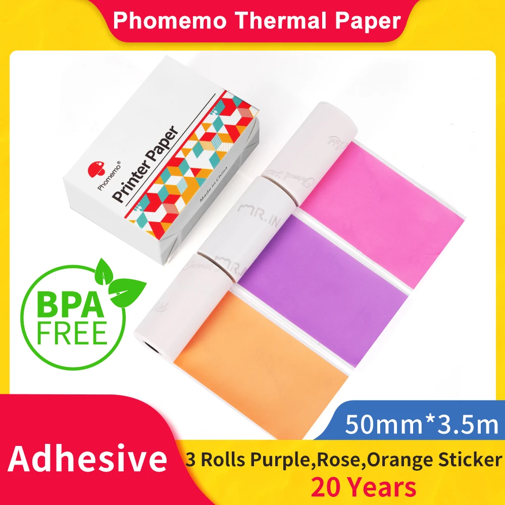 Термобумага для фотоаппарата Phomemo, самоклеящаяся фотобумага для Phomemo M02M02SM02Pro Mini печать наклеек