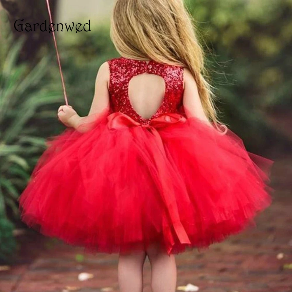 Милое детское блестящее красное платье принцессы, цветочное многослойное платье из органзы для девочек с открытой спиной, без рукавов, пышное Пышное нарядное платье, 2020