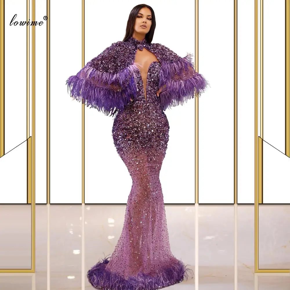 Большие размеры, фиолетовые вечерние платья, длинные прозрачные вечерние платья с блестками, платья знаменитостей с перьями, женские вечерние платья, Vestidos Largos