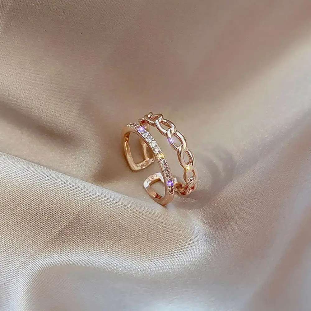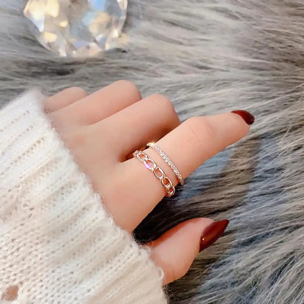 Новые Кольца для женщин Сияющий Циркон многослойный Крест регулируемое Открытое кольцо ювелирные изделия Bijoux розовое золото цвет свадебные кольца