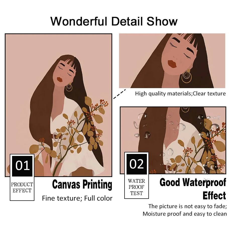Модная Минималистичная Картина на холсте с изображением девушки с цветком женщины, скандинавские плакаты и принты, настенные картины для декора гостиной