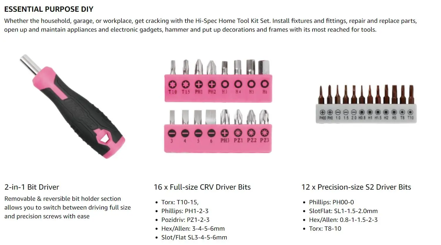 Доставка очень быстрая. Идеальная упаковка. Действительно красивый цвет, все инструменты выглядят хорошо. И размер для руки. Идеально подходит для женщин. Не слишком тяжелый, и все возможные винты даже маленькие. Магия для… ikea montage, и то, что вы себе представляете дома, или для помощи друзьям. Очень рекомендую начать новую работу Tasker. Спасибо, надеюсь, вам тоже пригодится.