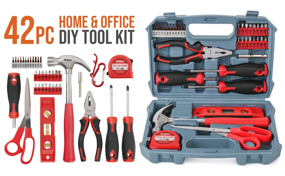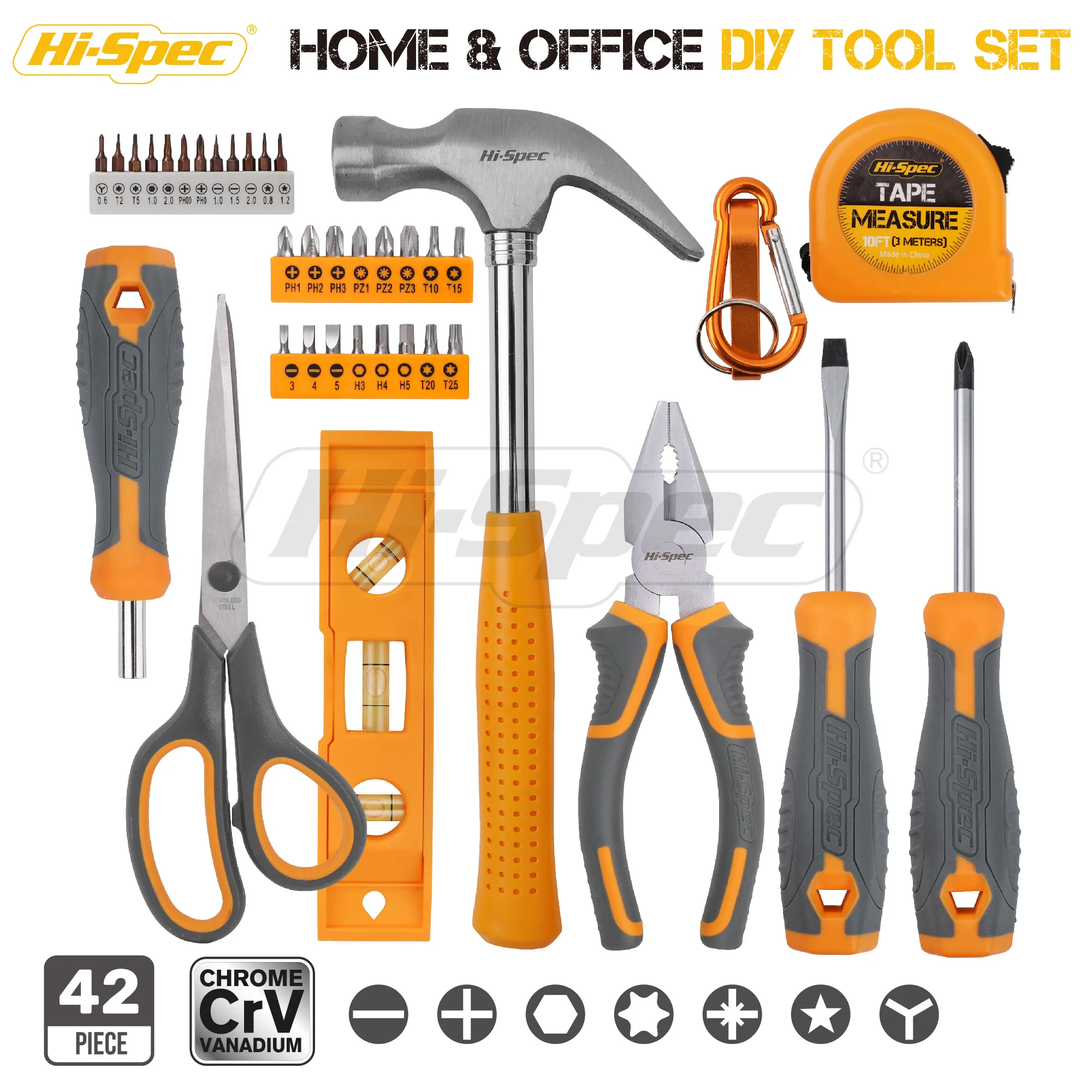 Набор ручных инструментов Hi-Spec, 42 шт., набор инструментов для дома, отвертка, ножницы, молоток, инструменты для домашнего использования