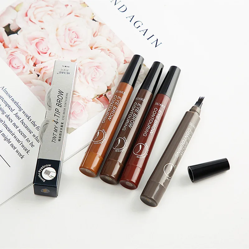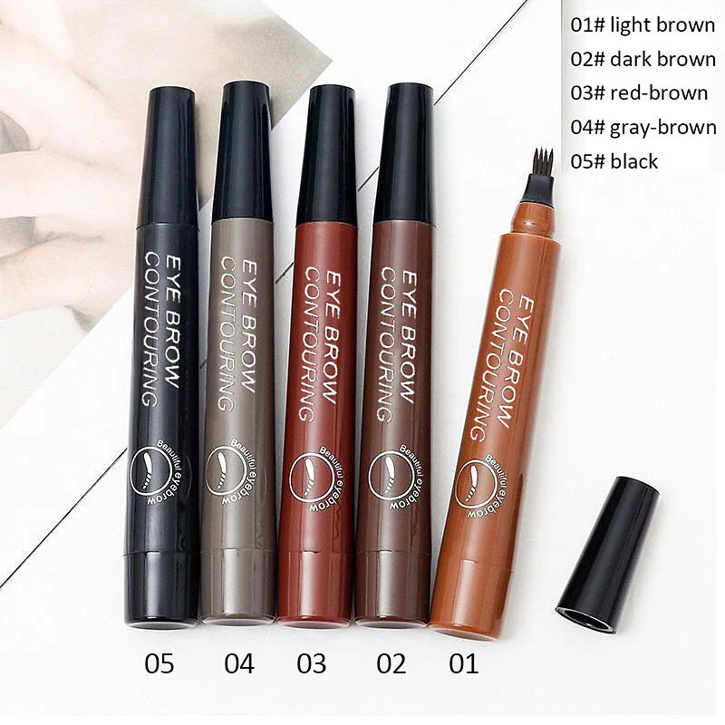 2021 Мода 5 цветов 3D микроблейдинг для бровей Тату ручка 4 вилка тонкий эскиз жидкий карандаш для бровей водостойкий оттенок для бровей Макияж