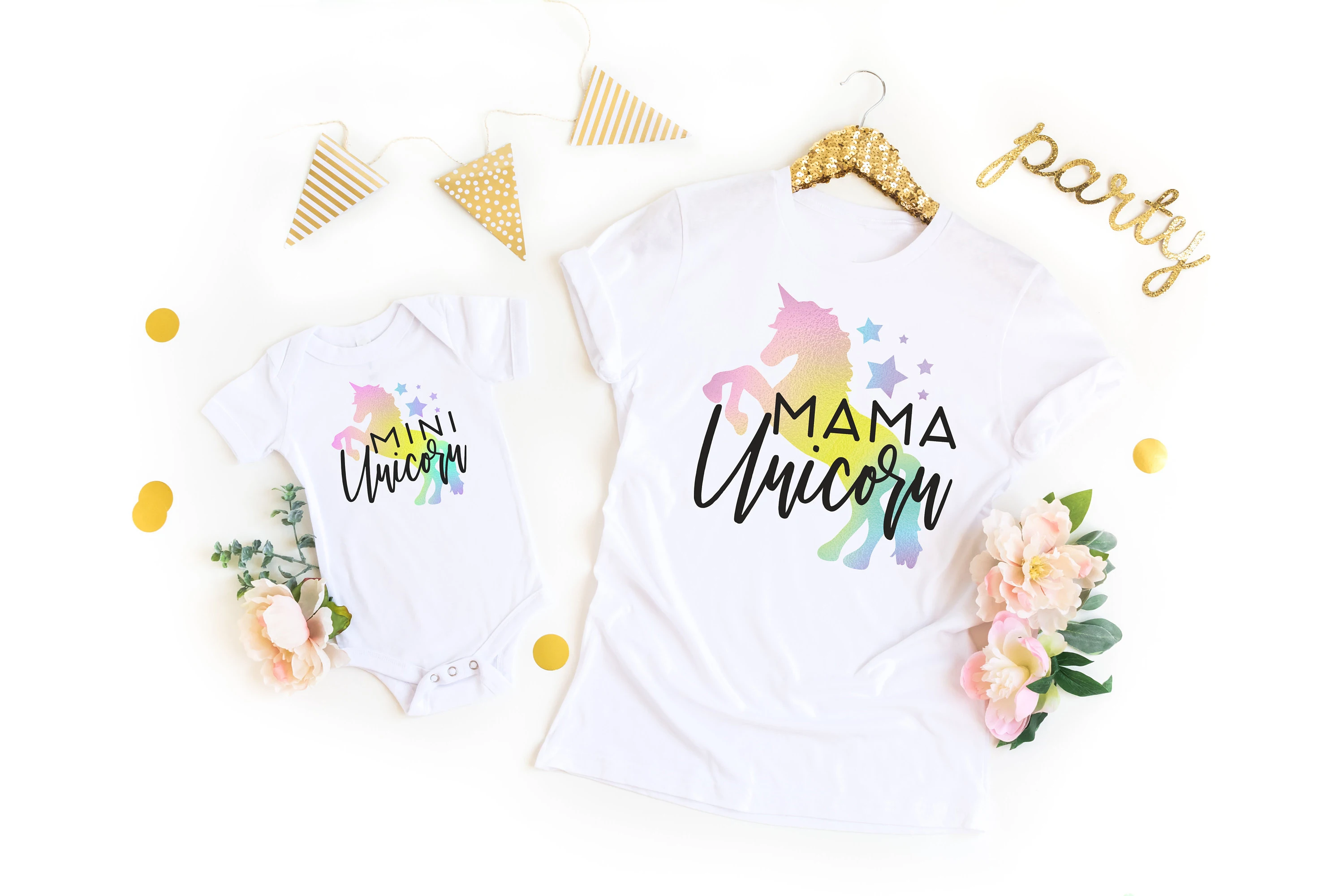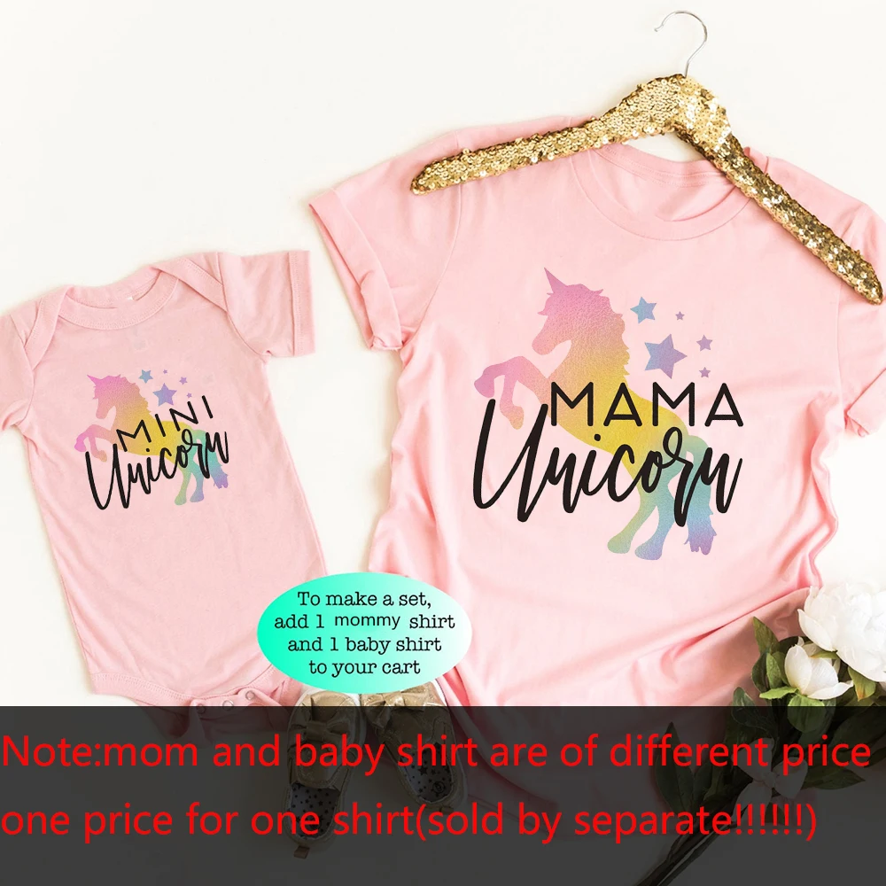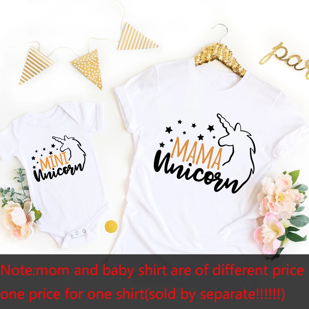 3 вида конструкций мини-рубашки с изображением единорога для мамы и дочки, футболки для мамы и дочки, одинаковые комплекты для мамы и ребенка
