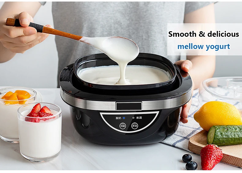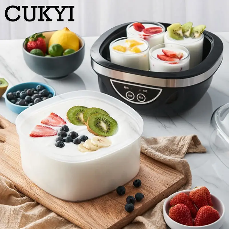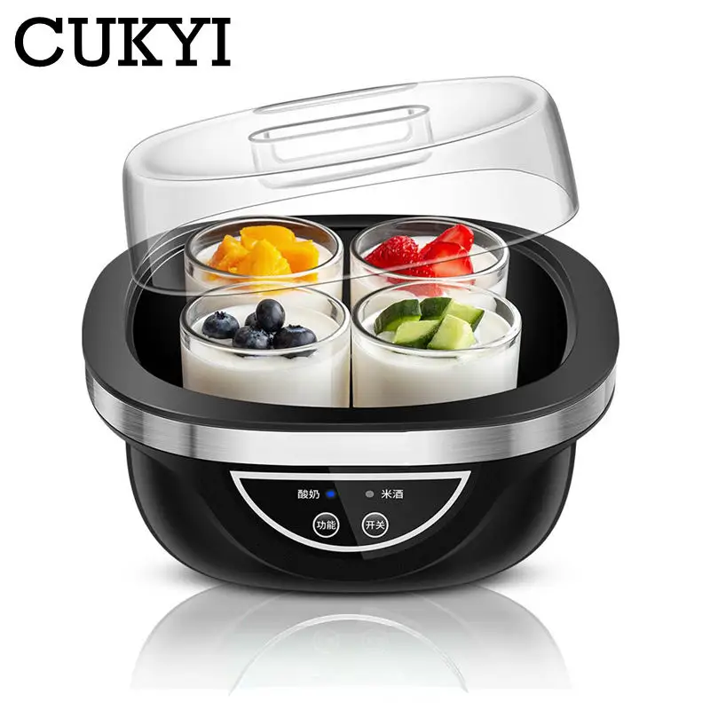 CUKYI электрическая автоматическая Йогуртница, 1 л, лайнер, 4 стеклянных чашки, бытовая машина для риса, вина, тачскрин, контейнер для йогурта, сделай сам