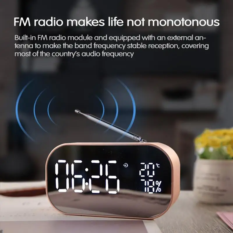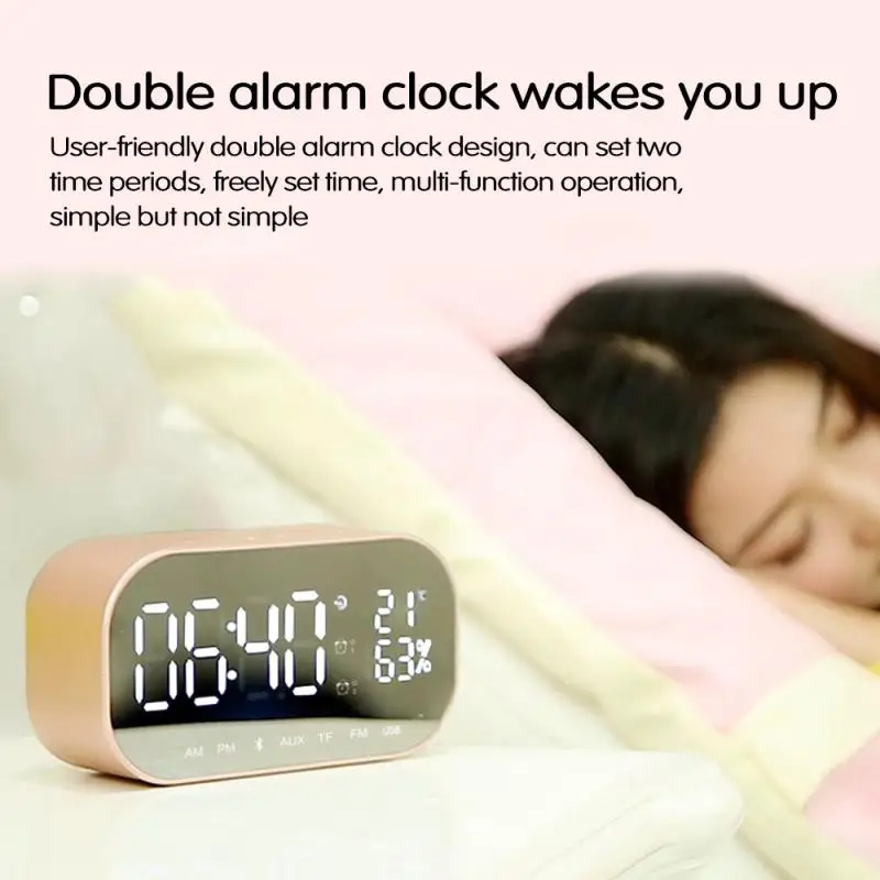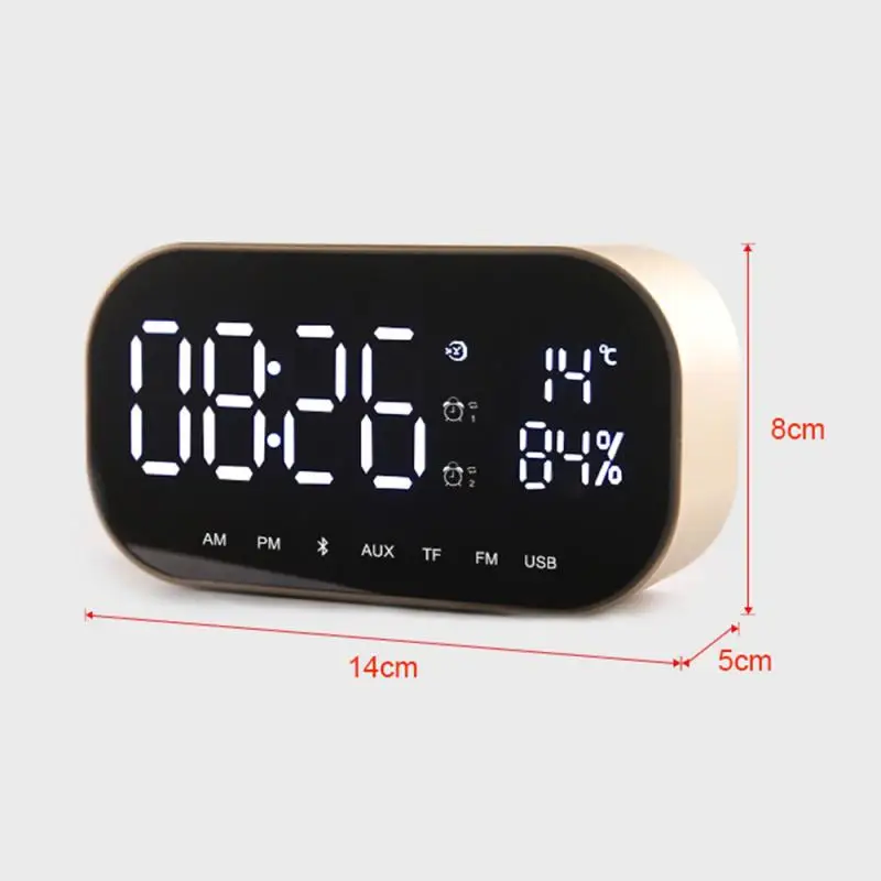 Портативный Bluetooth-динамик с ЖК-экраном, супер бас, беспроводная стереоколонка с поддержкой TF, AUX, зеркало, двойной будильник, для телефонов и компьютеров