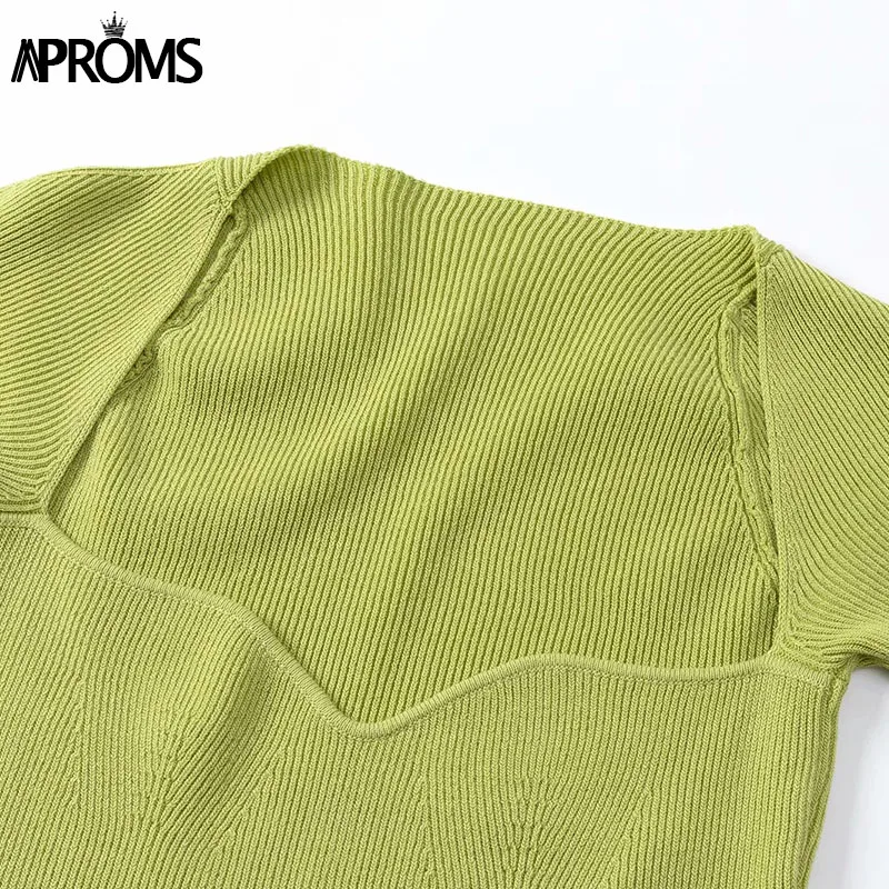 Aproms зеленая трикотажная футболка с квадратным вырезом, женская сексуальная Однотонная футболка с высоким вырезом, крутая уличная футболка для девочек, укороченный топ 2022