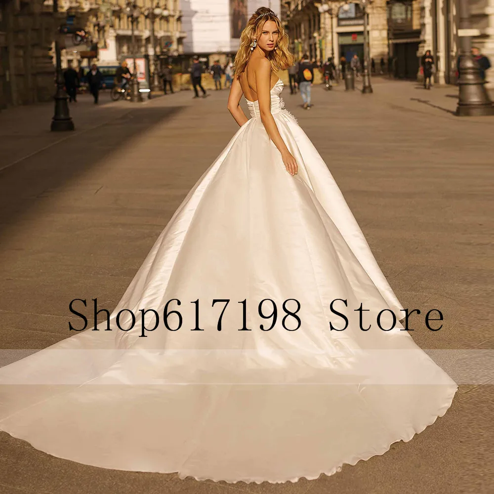 Простые Свадебные платья 2020, трапециевидные атласные свадебные платья с открытой спиной и шлейфом без рукавов, современные свадебные платья на заказ