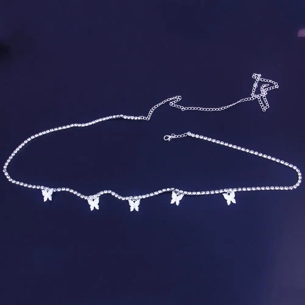 Цепочка женская с подвеской-бабочкой, модное ожерелье с кристаллами...