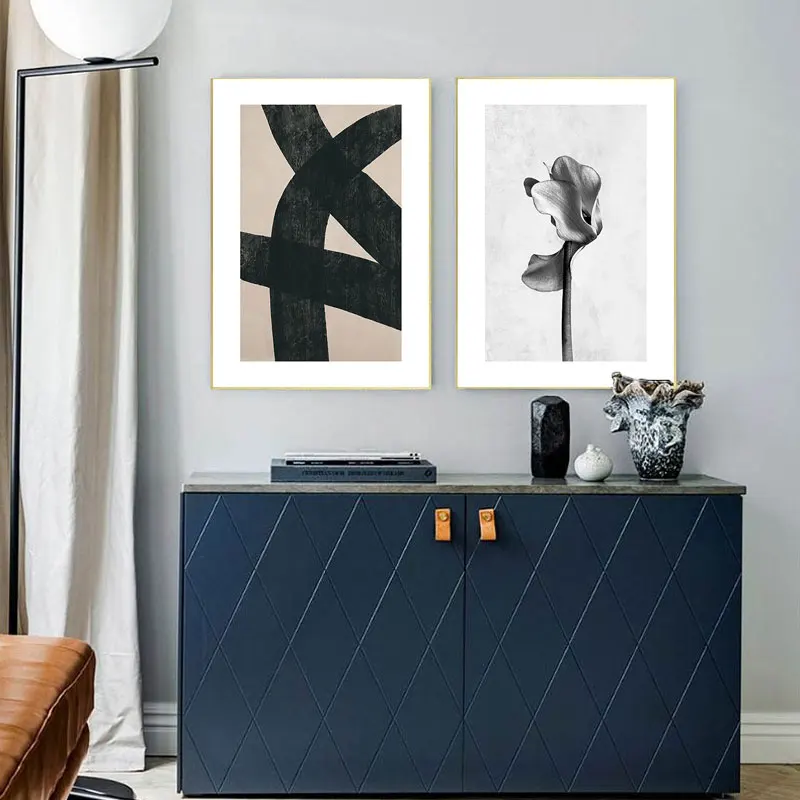Художественный постер с черно-белыми принтами, настенный минималист...
