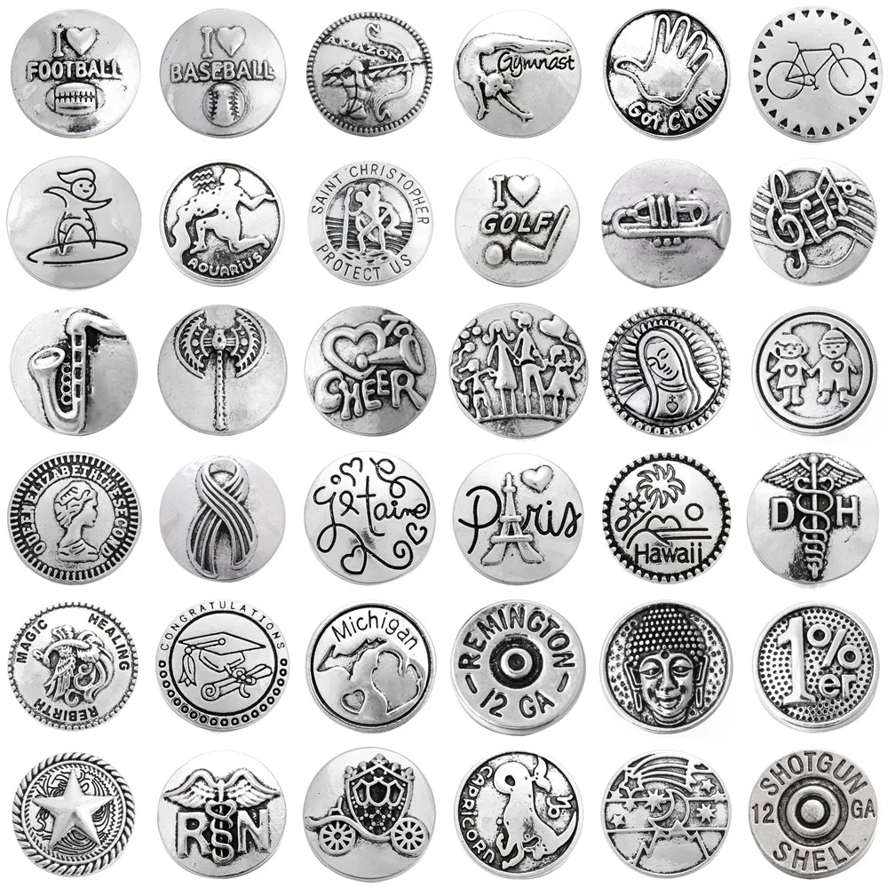 5 шт.лот металлические кнопки ювелирные браслеты футбольная бейсбольная музыка снежинки семья 18 мм кнопки подходят 18 мм защелкивающийся браслет