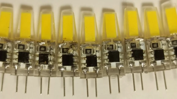доставка в течении месяца. Все 20шт проверил - работают. Из минусов - это не аккуратность пайки, неочищенность от флюса, как следствие муть в полимере, из 20шт ламп 2ве криво спаяны, выходят на поверхность полимера, в одной пузырь. Не заметил, чтобы указанные недочёты повлияли на свечение. Цена качество меня устраивают.