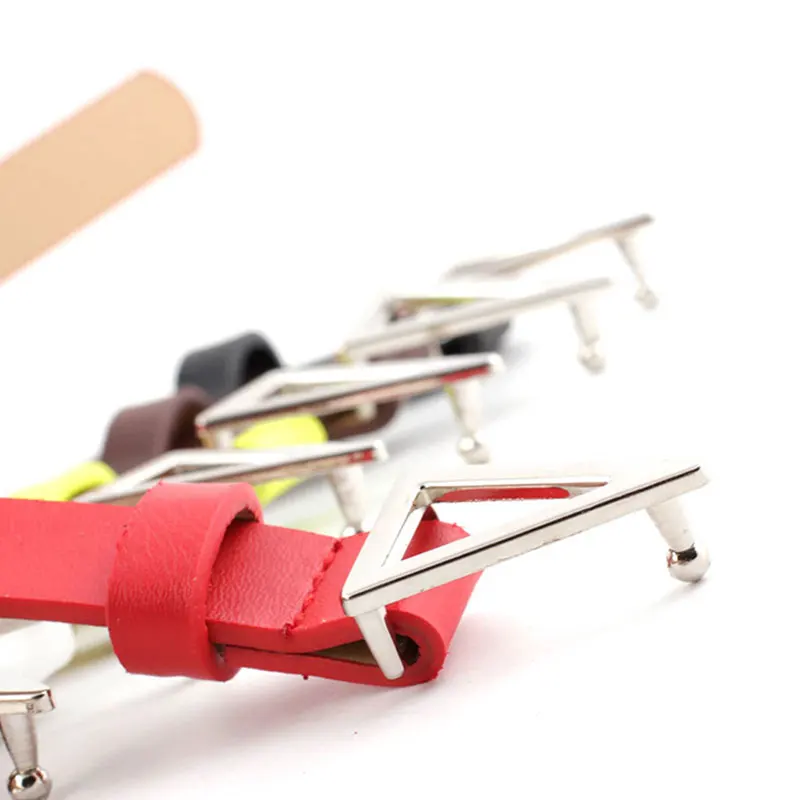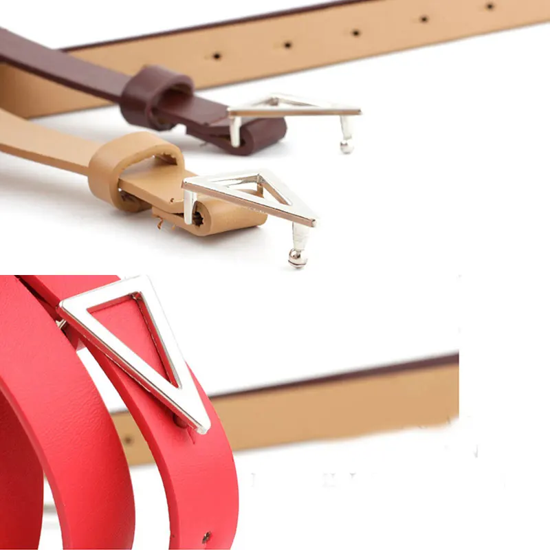 Женский пояс из серебряного сплава с треугольной пряжкой, тонкий пояс ярких цветов, женский пояс, тонкий пояс из искусственной кожи