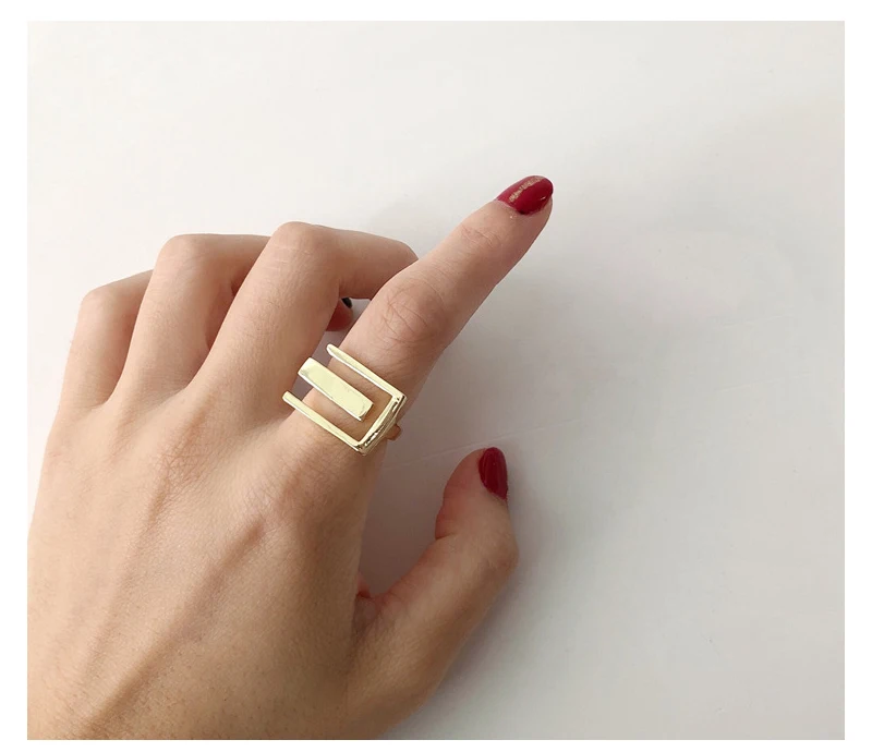 Квадратная двойная Слои геометрические жемчужные кольца модные повс...