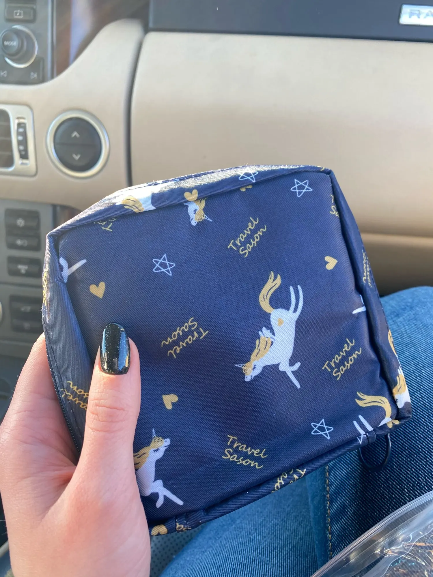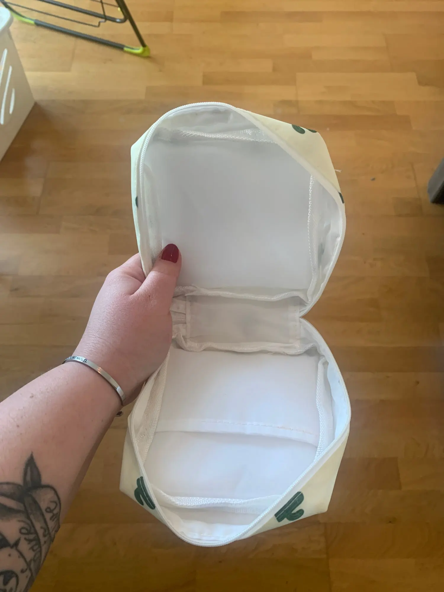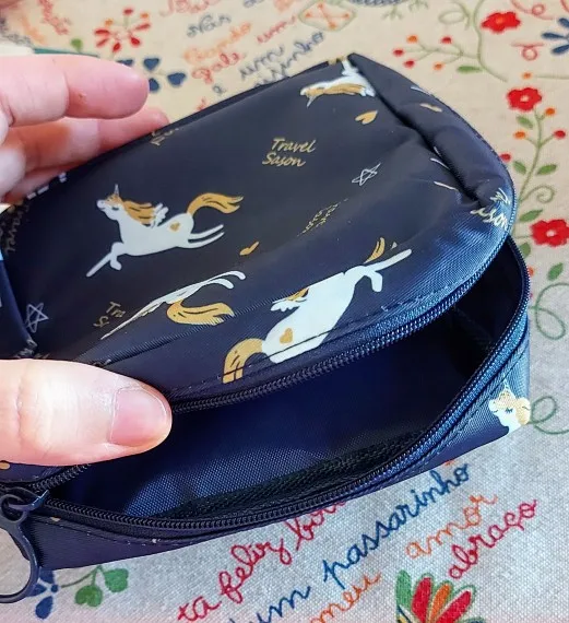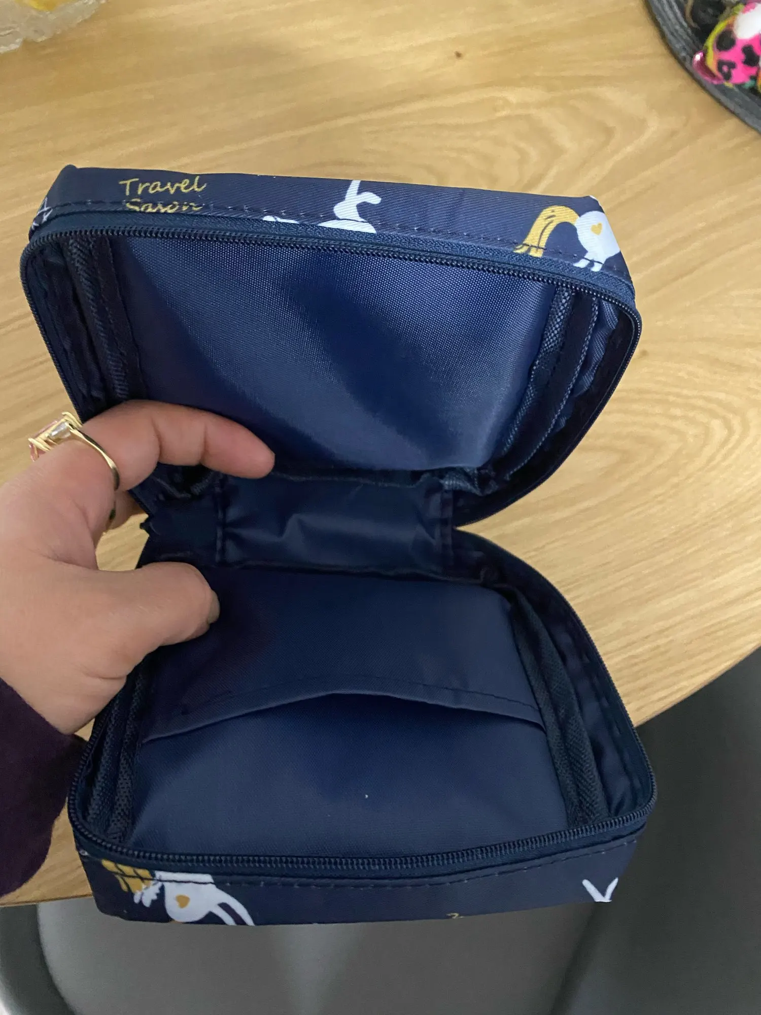 Думала будет меньше, но это и к лучшему - поместятся даже самые больше средства гигиены. Вместе с лекарствами и пачкой салфеток. Внутри два кармашка.
