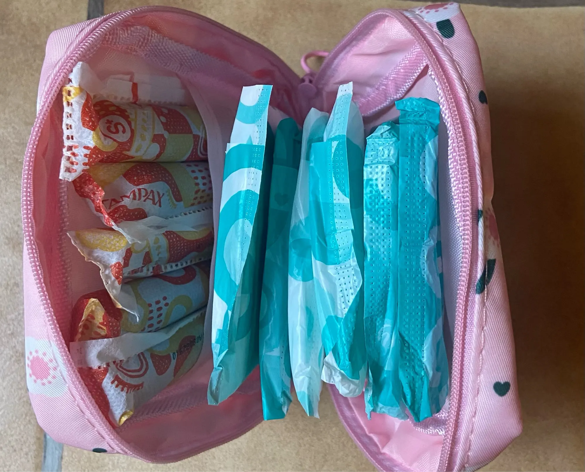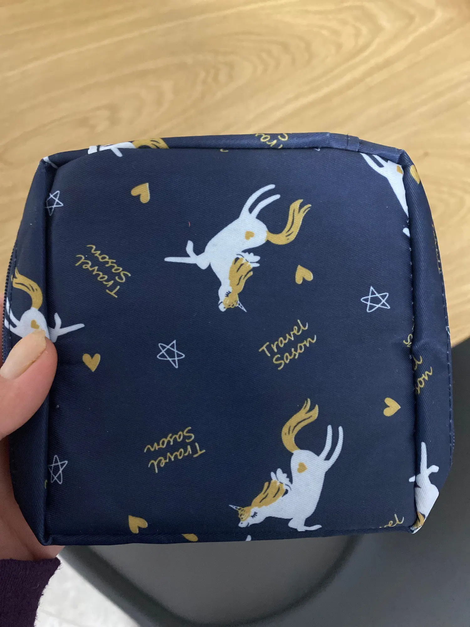 Думала, что сумка будет меньше. Удобна при транспортировке - можно хранить прокладки и трусы.
