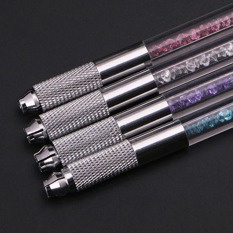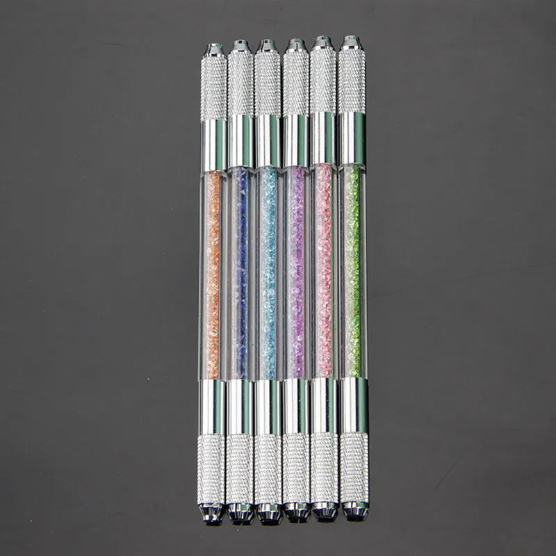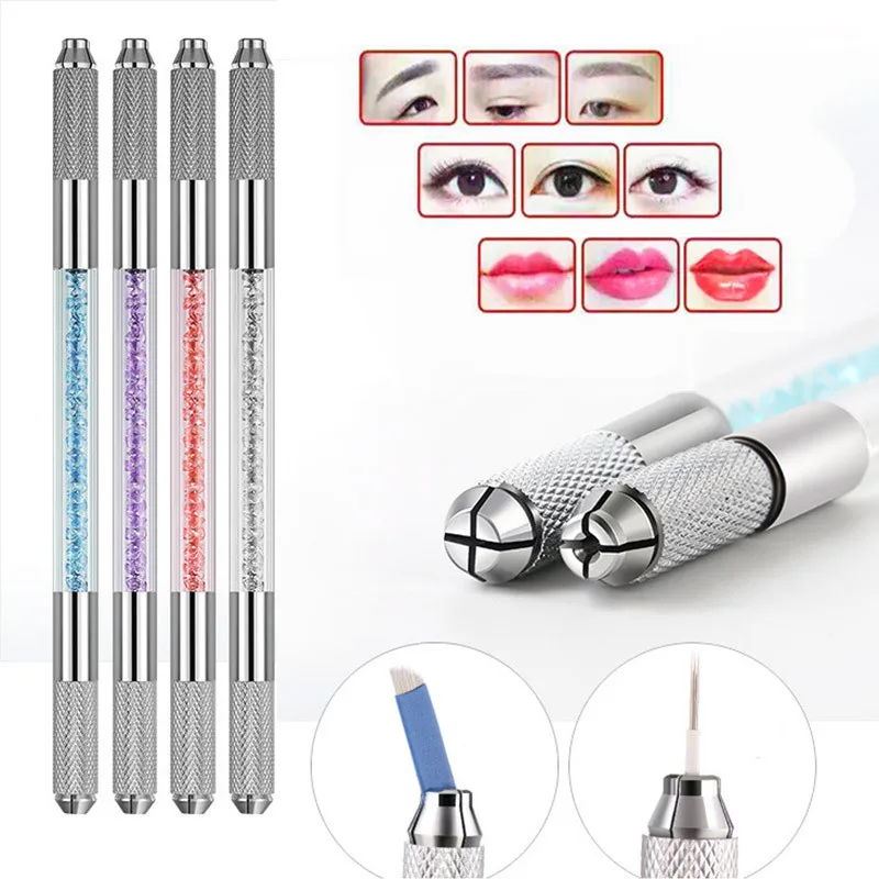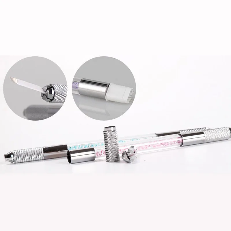 Оптовая продажа, ручка из нержавеющей стали для перманентного макияжа, ручка для микроблейдинга, ручка с двойным кристаллом, акриловая тату-ручка