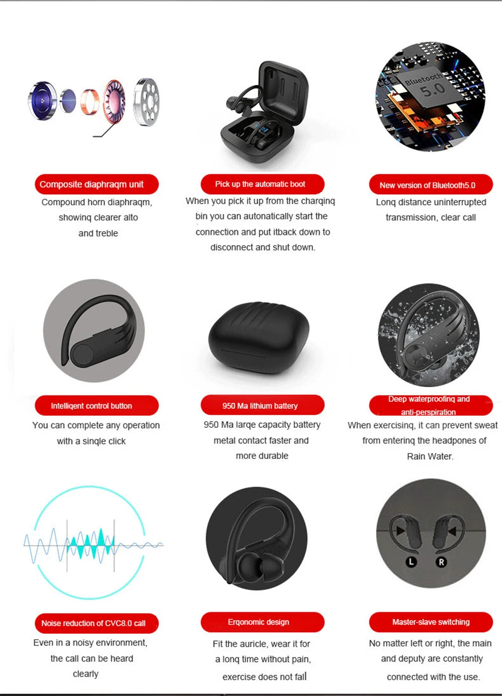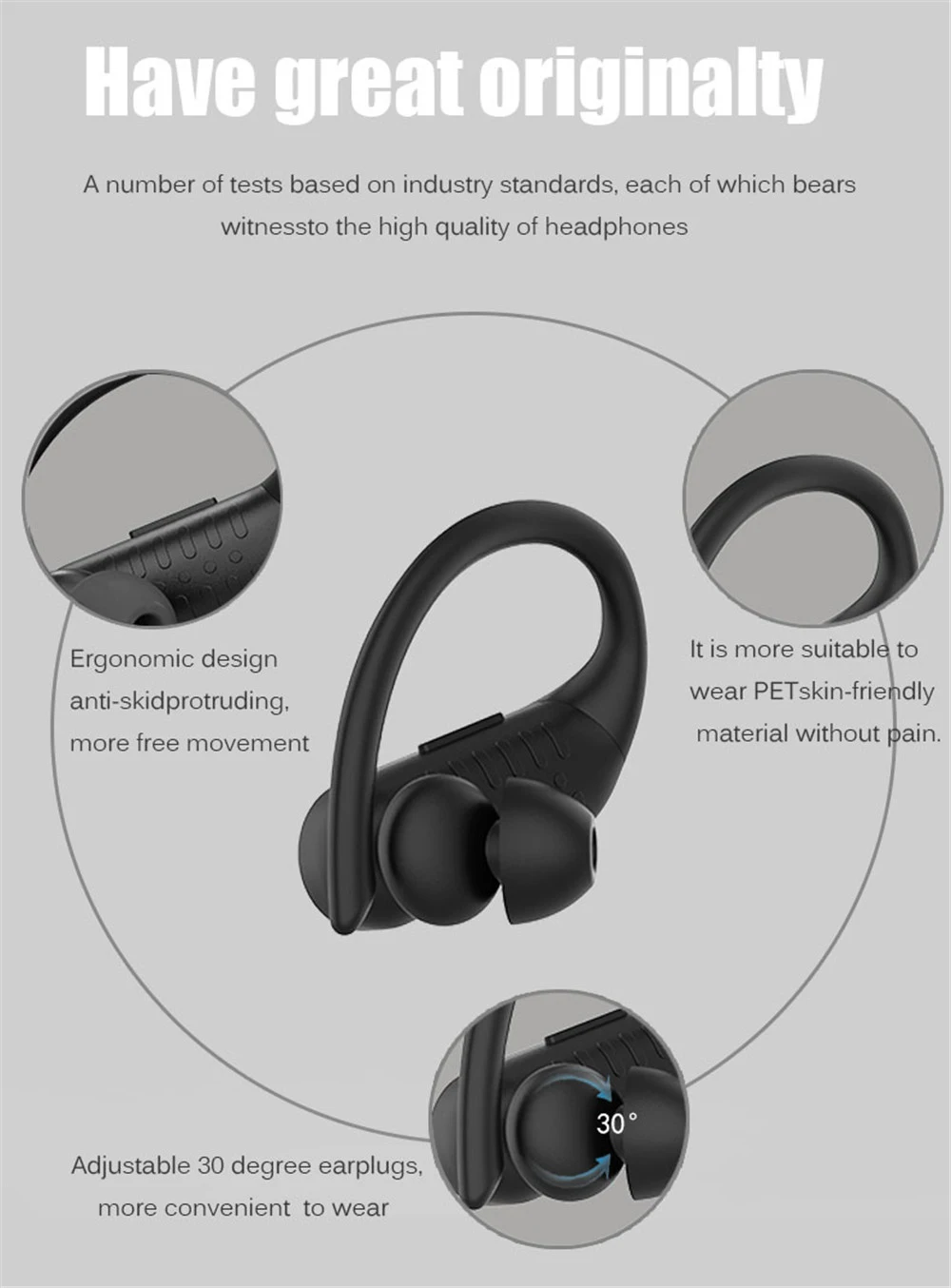 Беспроводные Bluetooth-наушники, TWS беспроводные наушники, спортивная водонепроницаемая игровая гарнитура с шумоподавлением и микрофоном