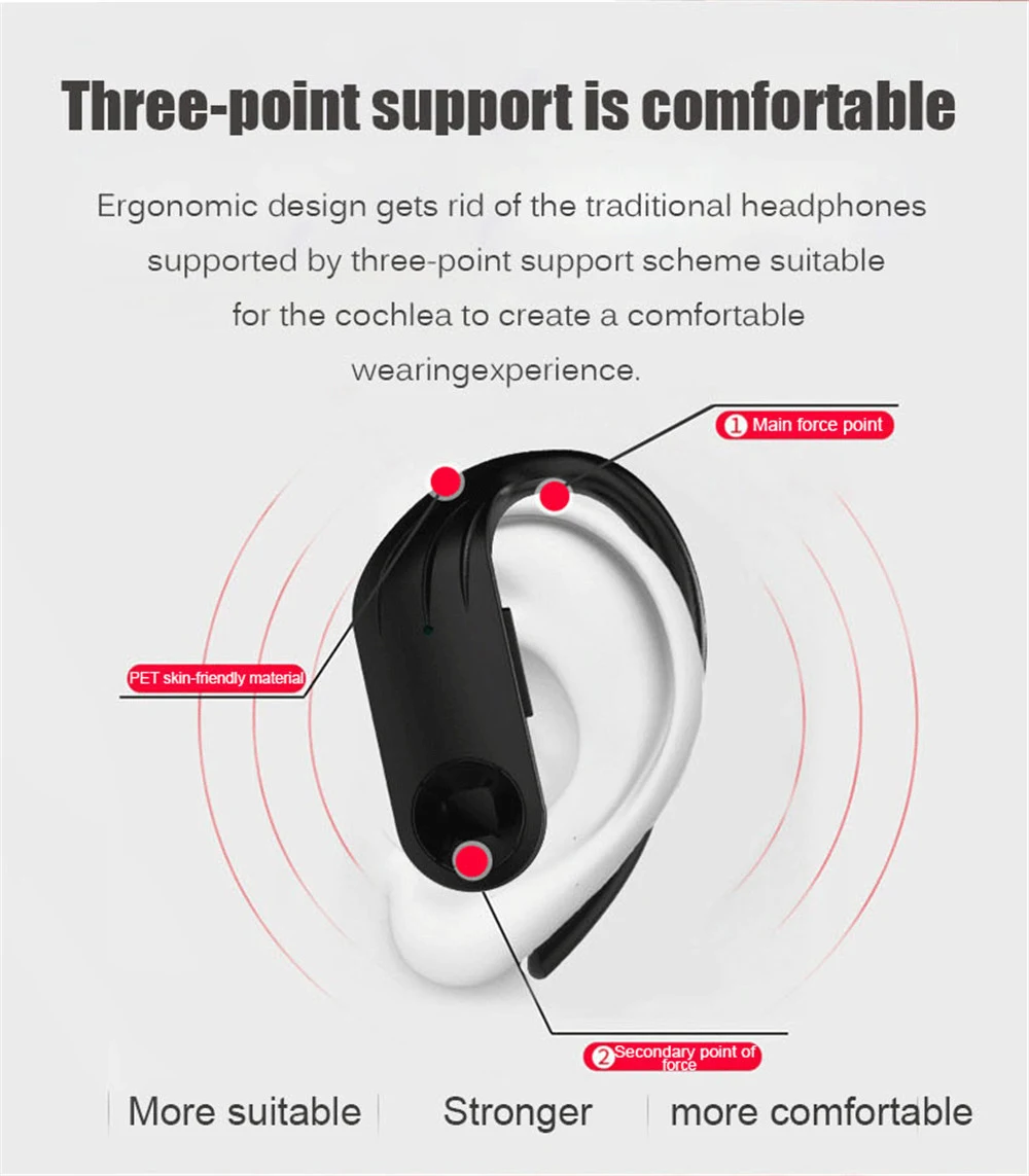 ● Полностью беспроводные Высокопроизводительные наушники с удобными, безопасными Ушными крючками для легкого комфорта и стабильности. ● Усиленная конструкция для защиты от пота и воды во время жестких тренировок. ● Управление громкостью и треком на каждом наушнике, возможность голоса и воспроизведение/пауза. ● Мощный, сбалансированный звук с динамическим диапазоном и шумоизоляцией. ● До 9 часов работы в режиме прослушивания камерах видеофиксации (более 24 часов с зарядкой чехол).