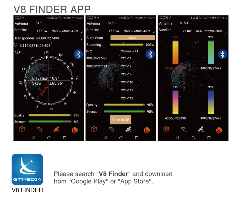 Спутниковый искатель GTMEDIA V8Finder BT03 DVB для IOS Android Satfinder