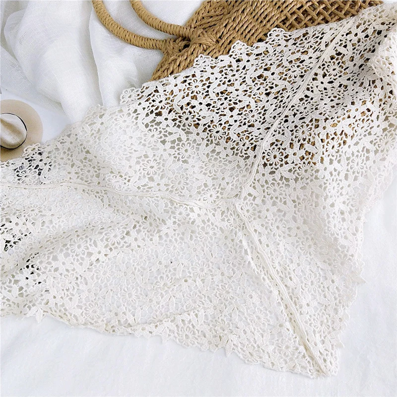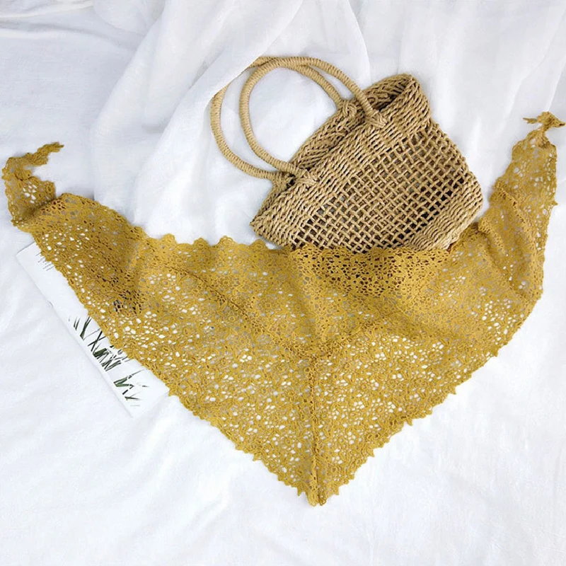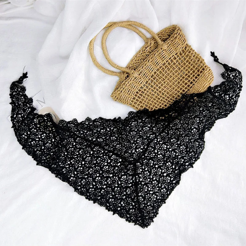 Женский кружевной прозрачный треугольный шарф, черный вязаный крючком платок с цветочным рисунком, весна-лето 2020