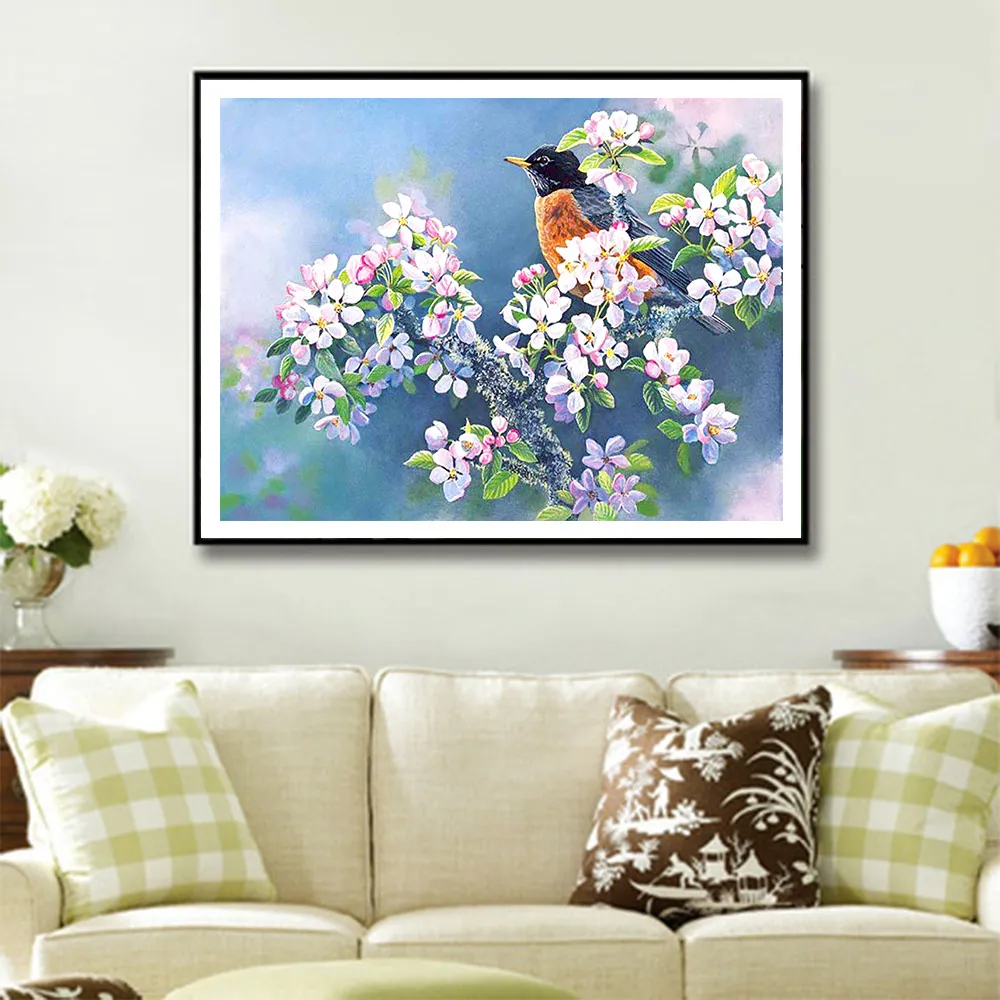 Begonia цветы Робин Алмазная картина Цветочная птица круглая полная дрель Nouveaute DIY мозаика вышивка 5D Вышивка крестом домашний декор