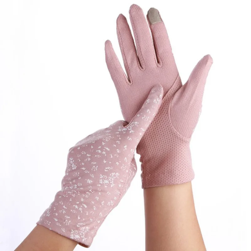 Перчатка от солнца для женщин, стрейч-перчатки для сенсорных экранов, нескользящая, дышащая, розовая, для вождения, весна-лето