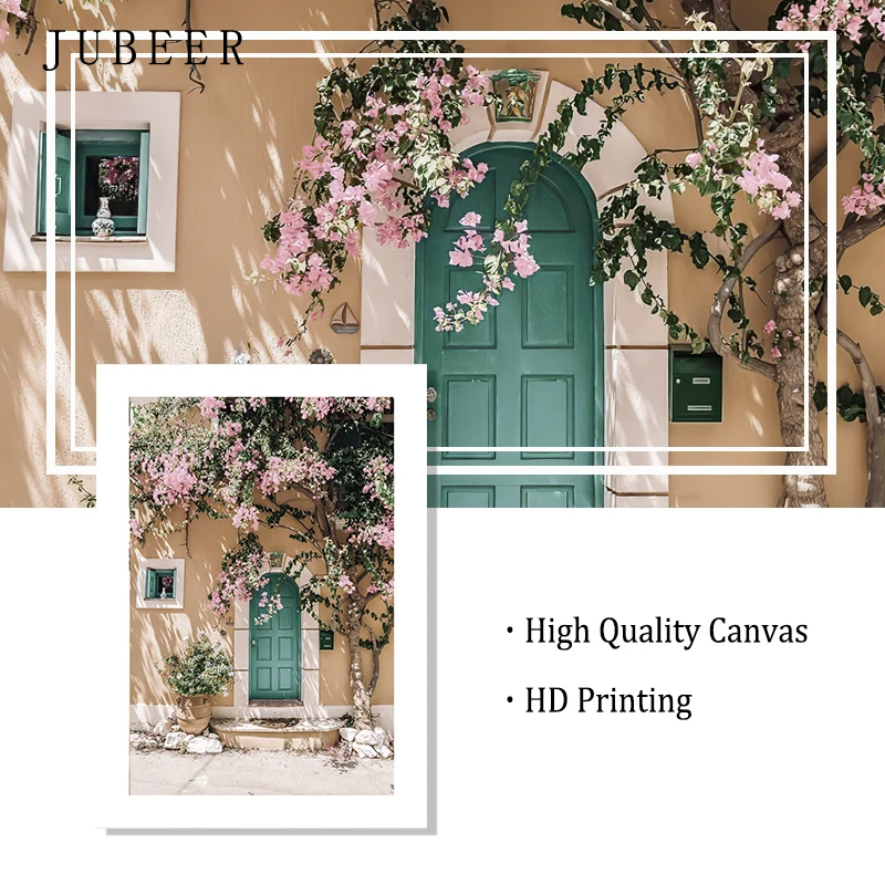 Постер на холсте с изображением розовых цветов старые ворота, ислам...