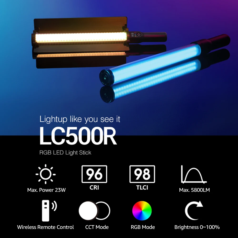 Godox LC500R выглядит как световой меч, идеально подходит для ручной работы. Это все, что Вам понравилось в его предыдущей версии LC500, но с дополнительным режимом RGB и эффектом FX светильник для дальнейшего освобождения вашего творчества. Его двухсторонние формы и направляет светильник. CRI: 96; TLCI: 98. Воспроизводите природу и яркие цвета.Особенности:2500 ~ 8500K Цветовая температура, точная цветопередача:LC500R оснащен режимом CCT для точной регулировки цветовой температуры от 2500K до 8500K. С CRI рейтингом 96 и TLCI на 98, светильник воспроизводит природу и яркие цвета.360 ° полный цвет и 0%-100% затемнения:LC500R использует режим RGB, обеспечивая полный контроль насыщенности, обеспечивая 360 выбор цветов. Он с регулируемой яркостью от 0% до 100%, что делает ваше изображение или содержимое более драматичным.14 FX световые эффекты и креативный музыкальный режим:Светильник имеет 14 видов встроенных эффектов FX светильник ing, содержащий в общей сложности 39 различных наборов для более творческого использования в пленке и фотографии идеально подходит для vlogging. С встроенным микрофоном, творческий режим воспроизведения музыки, позволяя светильник изменить ее цвет и светильник яркости ритмом музыки изменения, имитируя резкое диско-как вариант.Пульт дистанционного управления и барндверь в комплекте:LC500R поставляется с беспроводным пультом дистанционного управления, который способен управлять до 6 групп в 32 каналах, что позволяет полностью контролировать светильник HSI, CCT и FX функции. Двусторонняя барная дверь также включена для пользователей, чтобы придать форму и направить светильник.Гибкий светильник:LC500R весит светильник и идеально подходит для ручного использования, легко для пользователя, чтобы увидеть, где светильник сразу же падает. С гайкой 1/4-20, ее можно установить на штатив, кронштейн наклона или светильник-подставку, что обеспечивает более Гибкое размещение на светильник.Характеристики:Бренд: Godox--- Светодиодный светильник RGB Модель: LC500RТип вилки:Штепсельная вилка ЕС, штепсельная вилка США, штепсельная вилка Великобритании, штепсельная вилка JP (опционально)Встроенный литиевый аккумулятор: 14,4 В/2600 мАч литиевая батареяПотребляемая мощность: Максимальная мощность 23 ВтКанал: 32Группа: 6 (A, B, C, D, E, F)Цветовая температура: 2500K-8500KЗатемнения: 0% ~ 100%Диапазон RGB: 360 полных цветов100% освещение (люкс)(1 м, темное помещение): 5800 Макс.CRI: прибл. 96TLCI: прибл. 98Время работы батареи при полной мощности: прибл. 90 минутРабочая температура: -10 ℃ ~ 40 ℃Размеры (без шторки): 61,6*5,6*5,6 см/24,3*2,2*2,2 дюймовВес нетто (без двери): 810 г/28,6 унций--- Модель дистанционного управления: RC-R9Источник питания: 3,0 в (AAA * 2) (не входит в комплект)Беспроводной частота: 2,4 ГГцРасстояние (пустота): 50 мКанал: 32 (1-32)Группа: 16 групп (A-F, 0-9)ID: 99 (1-99)Рабочая температура: -10 ℃ ~ 40 ℃Размеры: 5,5*13,3*1 см/2,2*5,2*0,4 дюймовЧистая Вес: 63 г/2,2 ozРазмер посылка: 71,4*13*9,2 см/28,1*5,1*3,6 дюймовВес посылка: 2330 г/82,2 унцийУпаковочный лист:1 * LC500R светодиодный светильник1 * RC-R9 пульт дистанционного управления1 * двухсторонние барные двери1 * зарядное устройство с вилкой (16,8 V/1.2A)1 * Портативная сумка1 * Руководство по эксплуатации (английский и китайский)