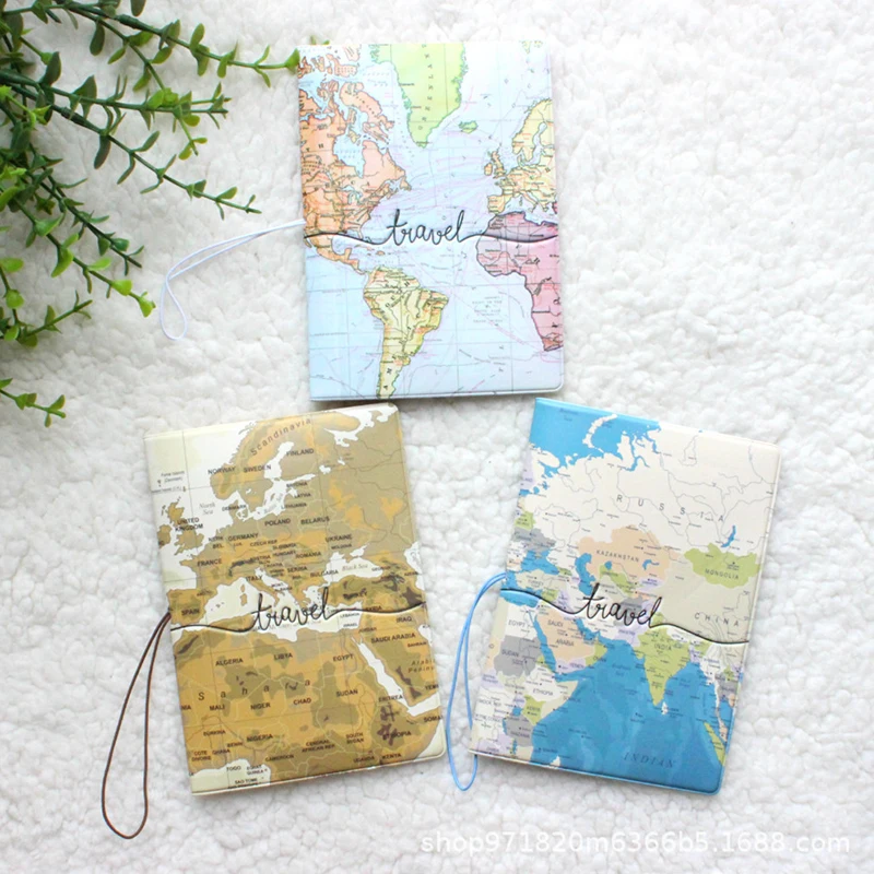 Чехол-Кошелек для паспорта, из искусственной кожи, с картой мира