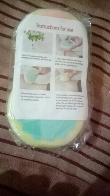 это просто фантастика, я не знаю как это работает но волосы с руки убираются очень быстро. нужно сначала намочить руку, а после потереть розовой стороной губки , а потом голубой. жаль я ноги уже побрила. Продавцу спасибо большое!