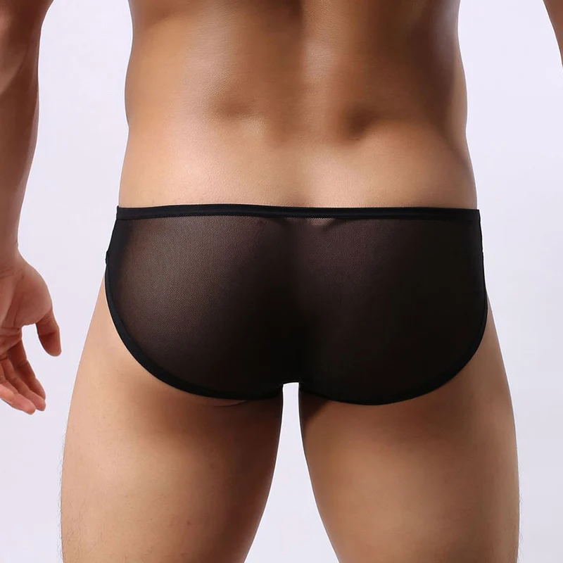 Трусы-брифы мужские сетчатые, пикантное нижнее белье с U-образным мешочком, прозрачные трусы для геев, шорты