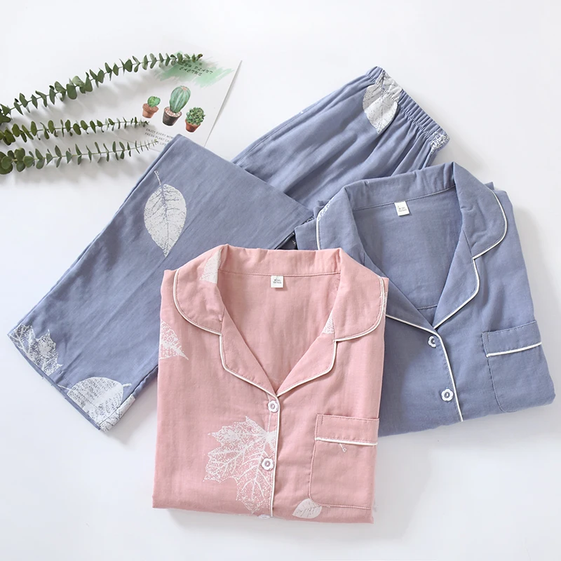Новинка 2022, Весенняя 100% хлопковая марлевая Пижама, Женский Летний Тонкий домашний костюм, японская Домашняя одежда с длинным рукавом, женский свободный пижамный комплект