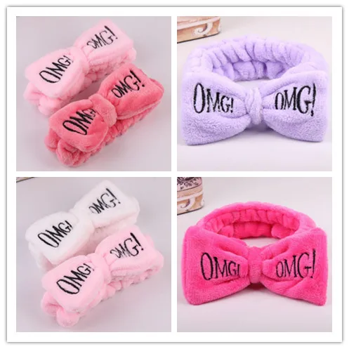 Повязка на голову женская из мягкого флиса, с бантом и надписью OMG, повязка на волосы "тюрбан"