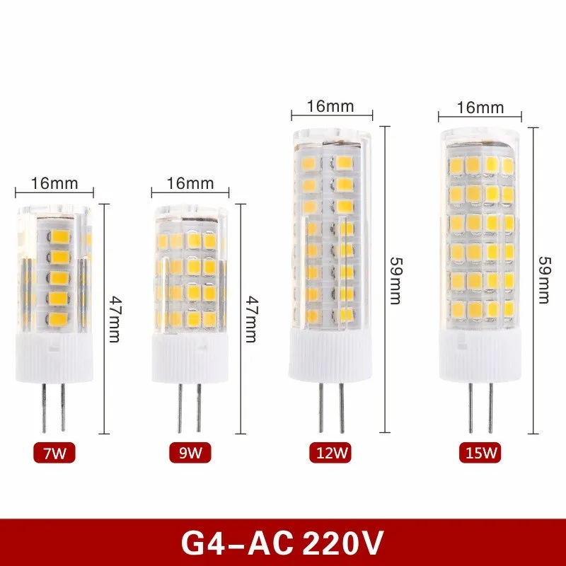 Супер яркий G4 G9 светодиодный светильник AC220V 7W 9W 12W 15W Керамический SMD2835 светодиодный теплыйхолодный белый точечный светильник, заменяющий галогенный светильник