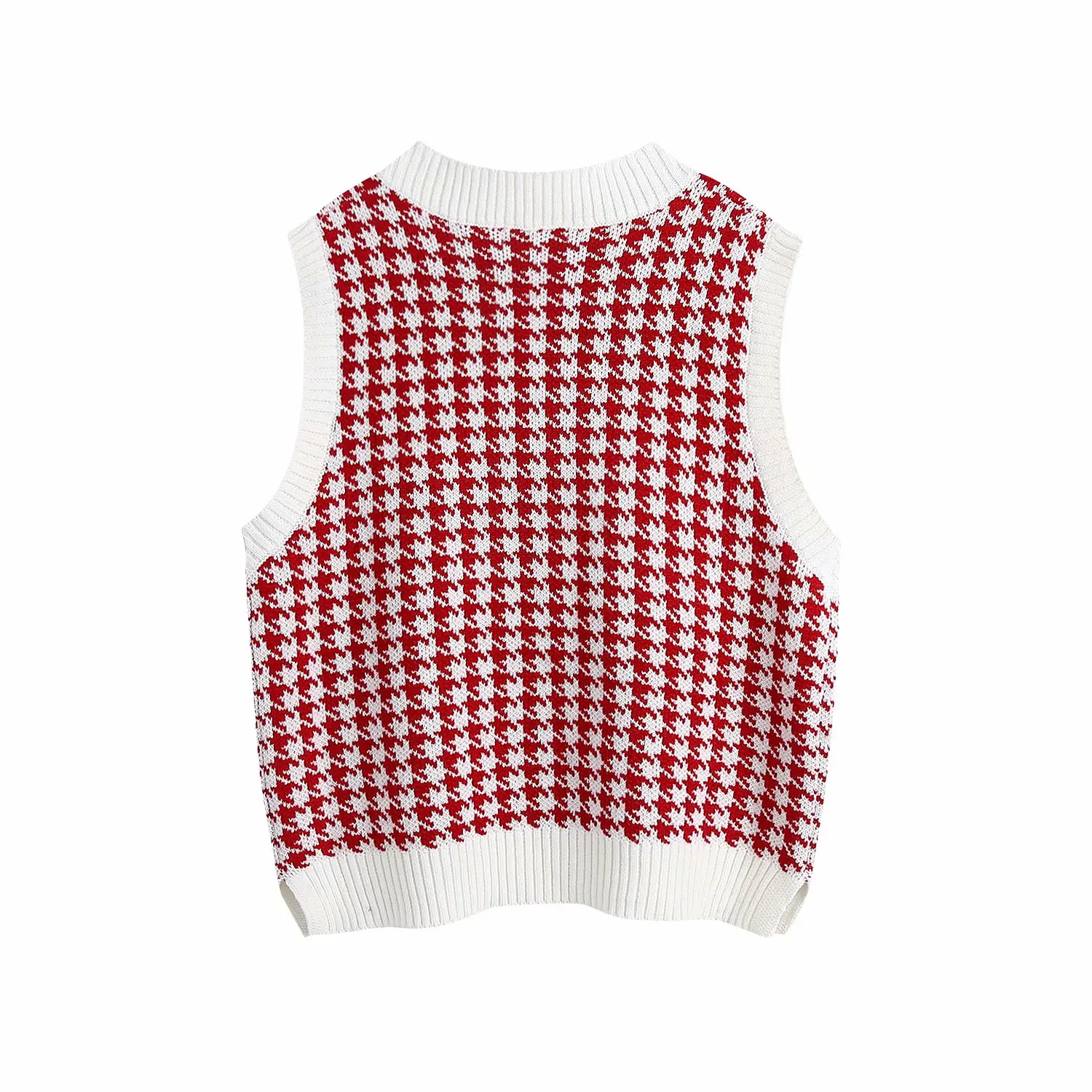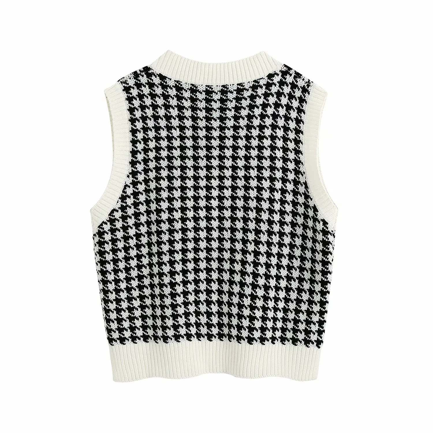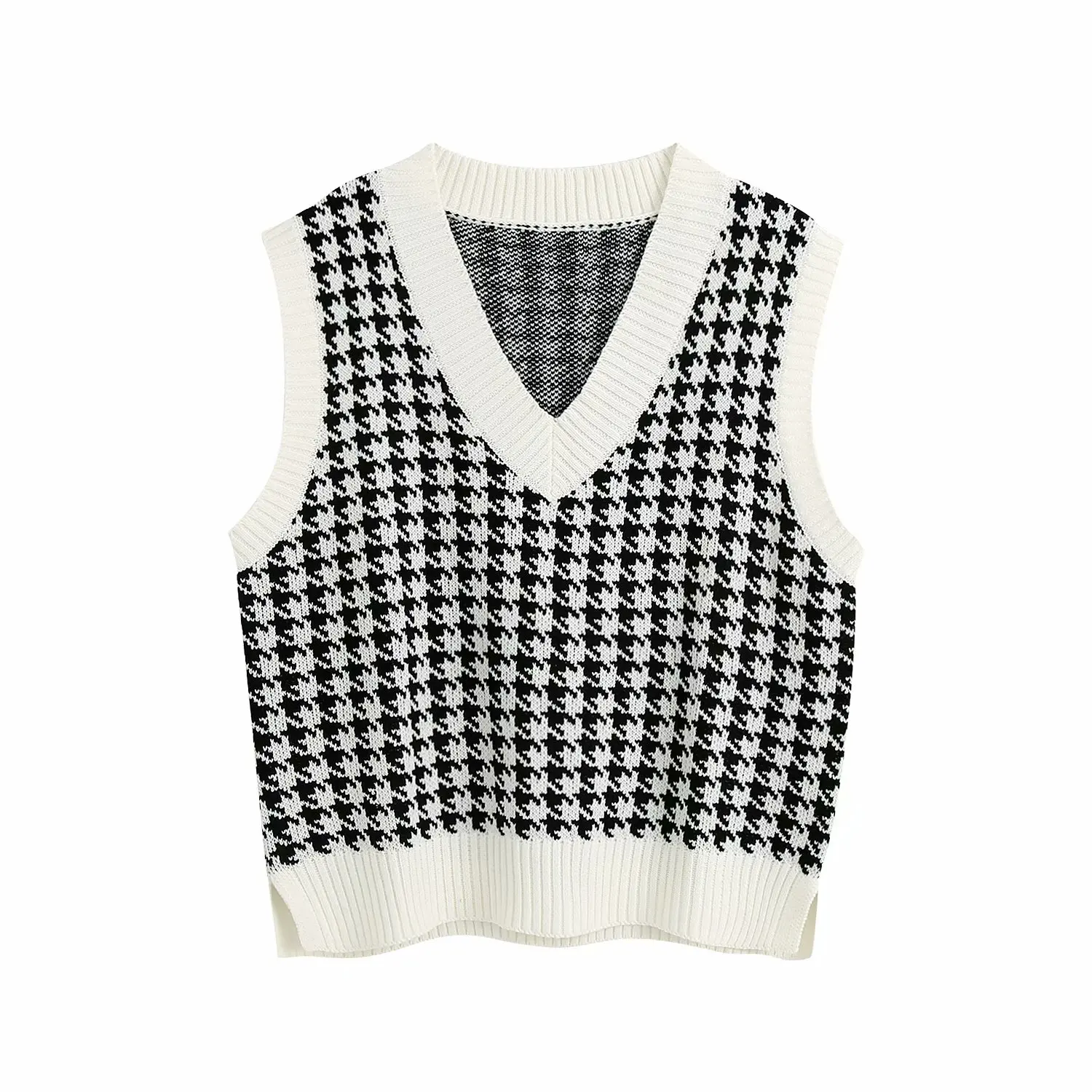 Свитер Женский вязаный, без рукавов, с V-образным вырезом, в клетку, винтажный, свитер Харадзюку