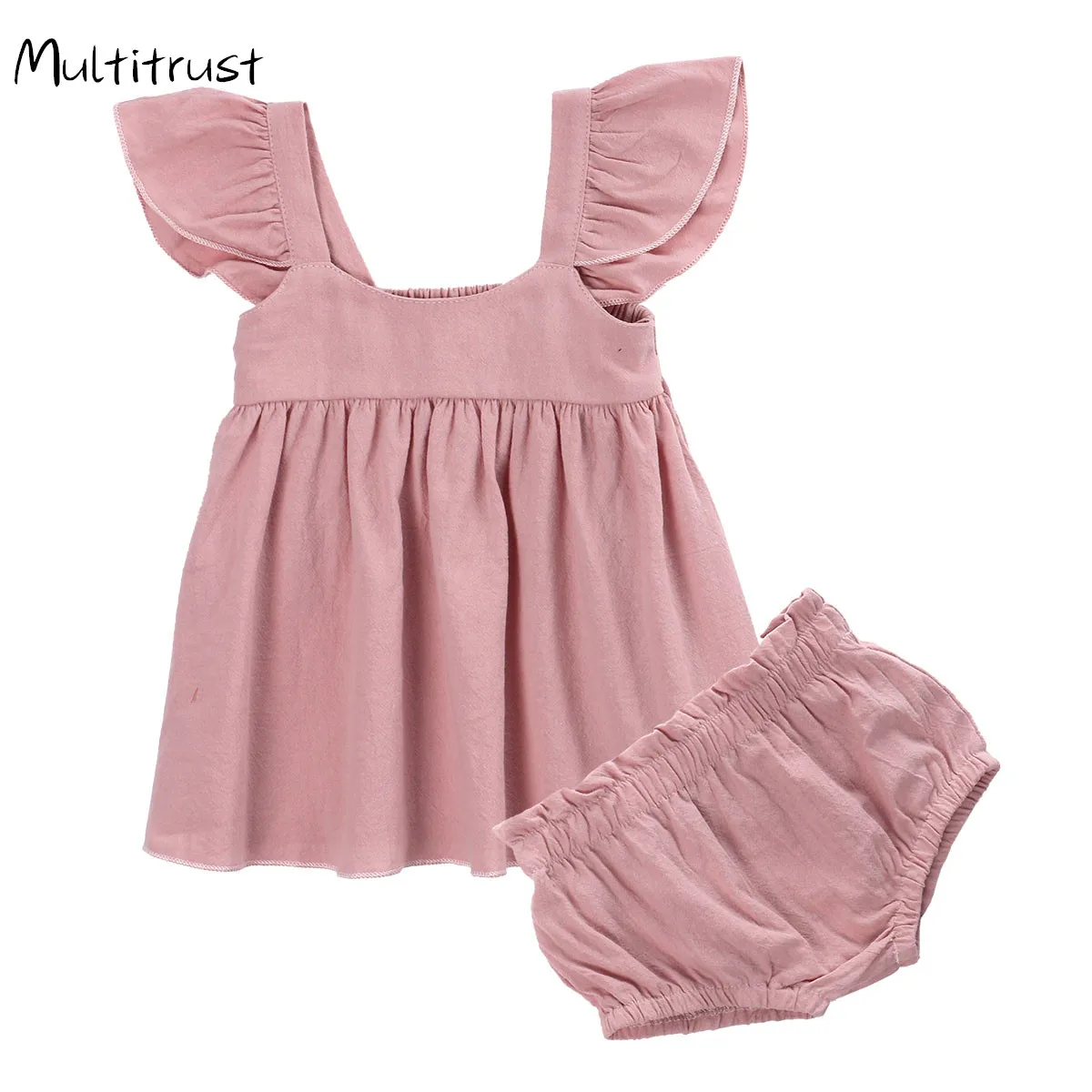 2020 детские наборы детской одежды для маленьких девочек, милый топ с рюшами на рукавах + шорты, комплект из 2 предметов, комплект летней одежды для детей 0-24 месяцев