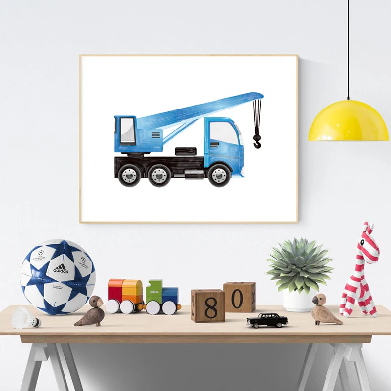 Watercolour Cartoon Crane Construction Art Painting Picture Home Decor