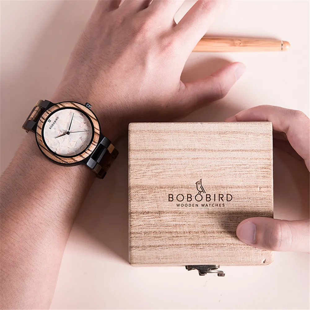 Лидирующий бренд BOBO BIRD стильные роскошные часы Zebrawood кварцевые часы ручной работы из натурального дерева relogio masculino в подарочной коробке Прямая поставка