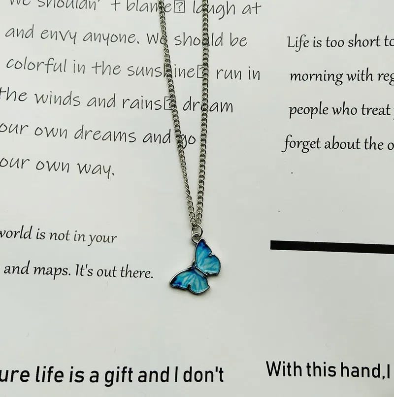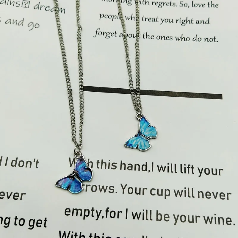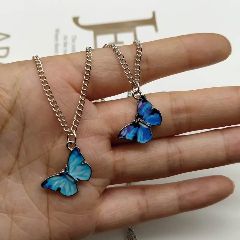 2020 Новая мода синий фиолетовый цвет бабочка кулон ожерелья для же...